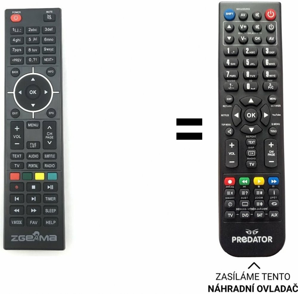 Zgema náhradní dálkový ovladač. H5, H2.H, H2, H7, H7C, H8S-4K , ZGEMMA H5, Zgemma H7S, ZGEMMA H9 Combo, ZGEMMA H9.2S, ZGEMMA H9.2HPokud chcete aby váš ovladač ovládal také televizor, můžete si přikoupit v košíku DOPROGRAMOVÁNÍ VŠEHO TELEVIZORU za 50 Kč