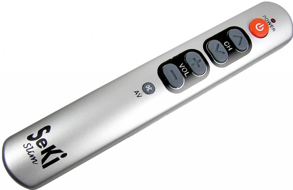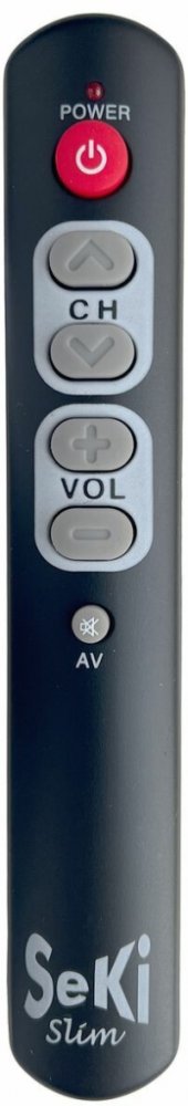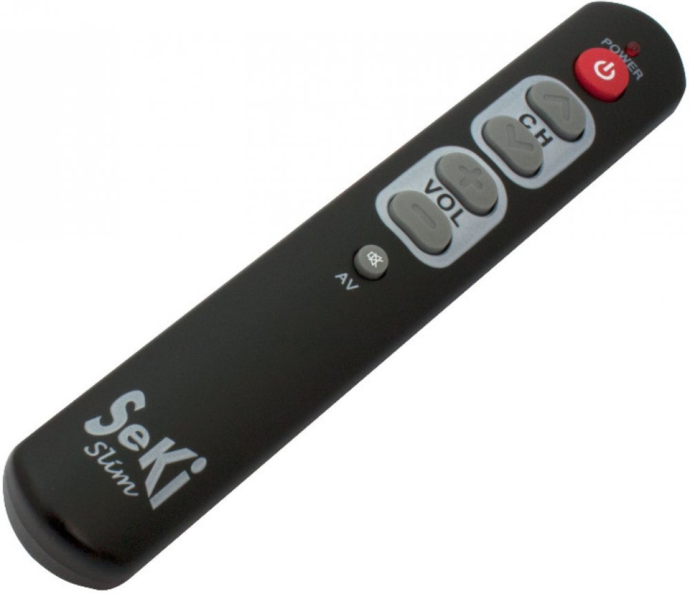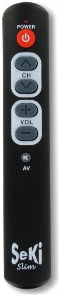 pro seniory - velká tlačítka SEKI Slim učící se dálkový ovladač zvládá jednoduché ovládání základních funkcí televize, set top boxu nebo satelitu.