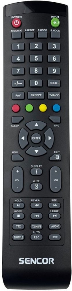 Značkový originální dálkový ovladač SENCOR SLE3227TCS, SLE3225TCS, SLE3260TCS, SLE43F15TCS, SLE2472TCS. Je určen pro tyto modely SENCOR:SLE2472TCS, SLE3225TCS, SLE3227TCS, SLE3260TCS, SLE43F15TCS. (Nemusí zde být uvedeny úplně všechny kompatibilní modely. Pokud si nejste jisti, sdělte nám svůj model (použijte online chat, e-mail, telefon), neprodleně zkontrolujeme a ověříme, zda je tento ovladač kompatibilní s Vaším přístrojem. Za poskytnutou informaci ručíme.) ?Dálkový ovladač je originální dálkový ovladač od výrobce SENCOR✔Jedná se o ORIGINÁLNÍ dálkové ovladání, proto nevyžaduje žádné párování, nastavování ani žádné kódy. Stačí vložit baterie a funguje se všemi výše uvedenými modely. Tento ovladač momentálně není skladem. Pro bližší informace nás kontaktujte.