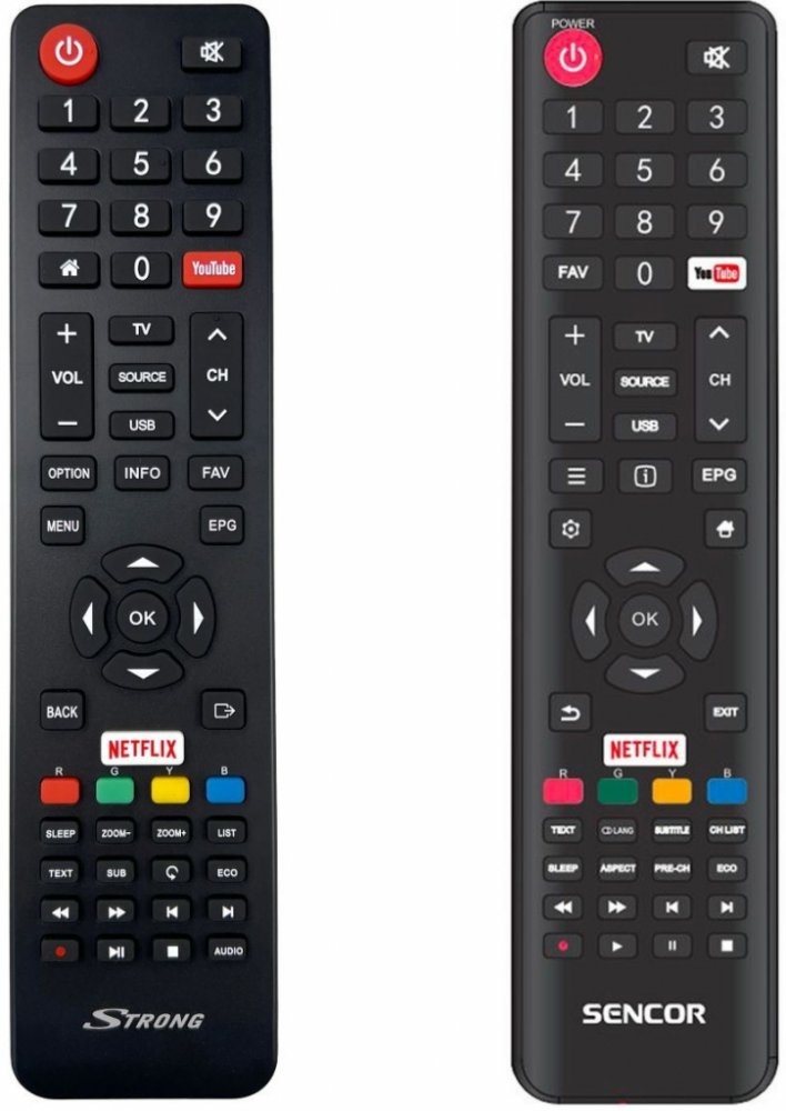 Nový originální dálkový ovladač SENCOR SLE43FS600TCS, SLE43US600TCS, SLE49US600TCS, SLE55US600TCS. Dálkový ovladač je určen pro tyto modely SENCOR: SLE43FS600TCS, SLE43US600TCS, SLE49US600TCS, SLE55US600TCS. (Nemusí zde být uvedeny úplně všechny kompatibilní modely. Pokud si nejste jisti, sdělte nám svůj model (použijte online chat, e-mail, telefon), neprodleně zkontrolujeme a ověříme, zda je tento ovladač kompatibilní s Vaším přístrojem. Za poskytnutou informaci ručíme.) Jedná se o ORIGINÁLNÍ dálkové ovladání, proto nevyžaduje žádné párování, nastavování ani žádné kódy. Stačí vložit baterie a funguje se všemi výše uvedenými modely.