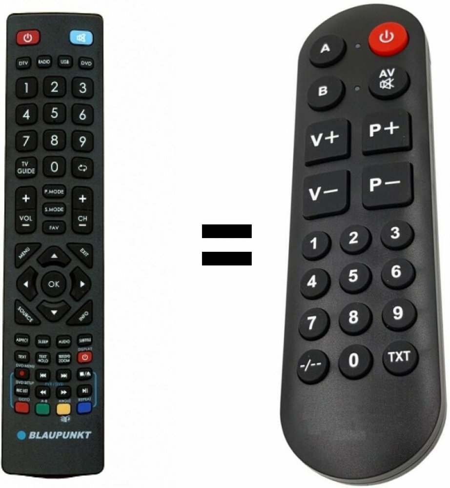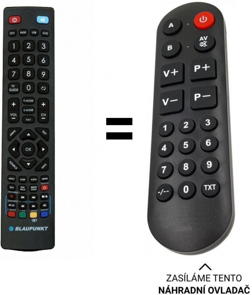 POUZE ZÁKLADNÍ FUNKCE. Blaupunkt náhradní dálkový ovladač LED TV - BEZ NUTNOSTI PROGRAMOVÁNÍ Ovladač je možno použít pro modely BA 32C233BBKPE236, 40/189I-GB-5B- FHBKUP- EU, B40A122TCFHD, B32A152TCHD OVLADAČ MŮŽE BÝT POPSÁN JINOU ZNAČKOU, NEBO BEZ POPISU. Stále se však jedná o originální ovladač vyráběný stejným výrobcem.