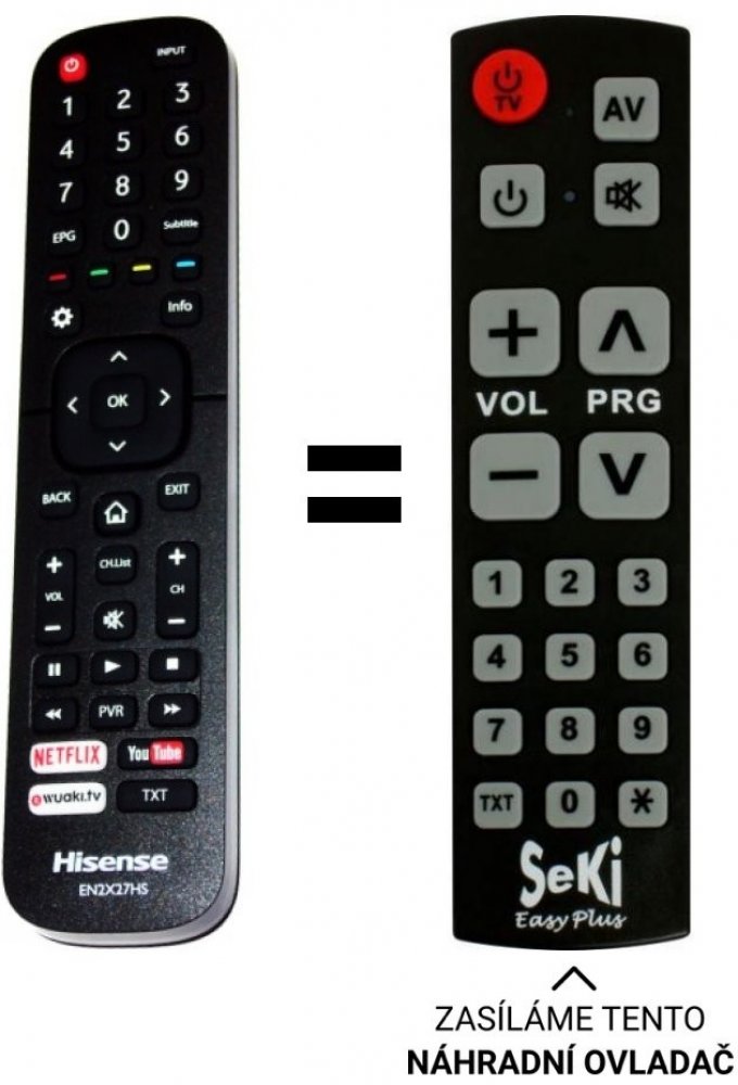 POUZE ZÁKLADNÍ FUNKCE. HISENSE náhradní dálkový ovladač BEZ ZADÁVÁNÍ KÓDŮ například pro modely