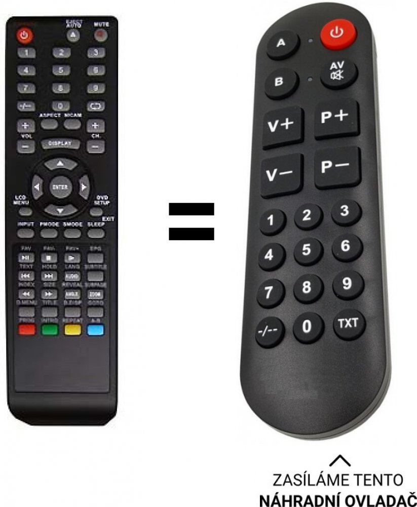 POUZE ZÁKLADNÍ FUNKCE. JTC náhradní dálkový ovladač pro tv DVB62307 BEZ NUTNOSTI ZADÁVAT KÓDY.