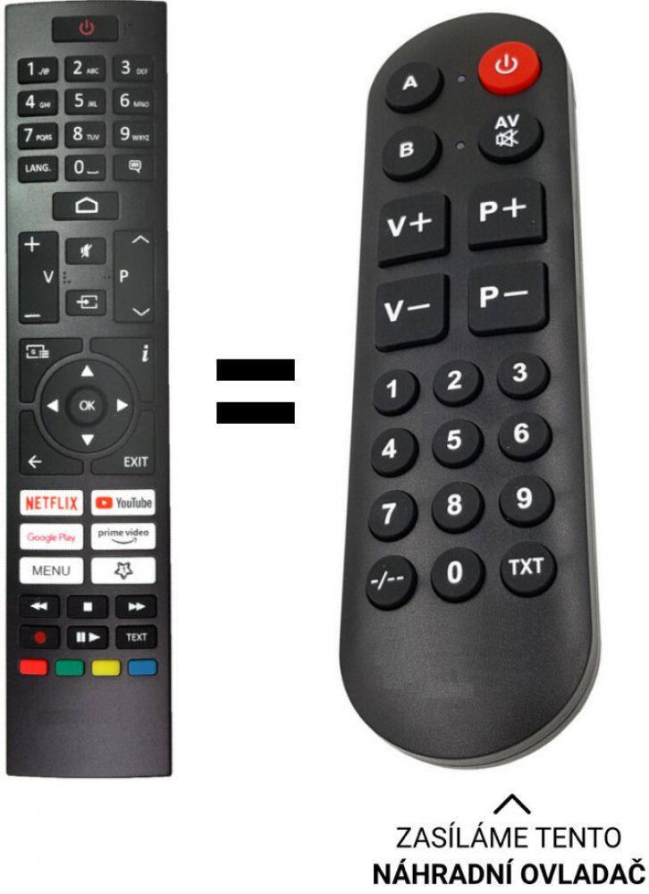 POUZE ZÁKLADNÍ FUNKCE. JVC náhradní dálkový ovladač pro TV LT50VAQ6235 AndroidTV LT-43VA3000, LT-43VA3200, LT-39VAH3055, LT-65VAQ8235, LT-24VAH3235, LT24VAH3235
