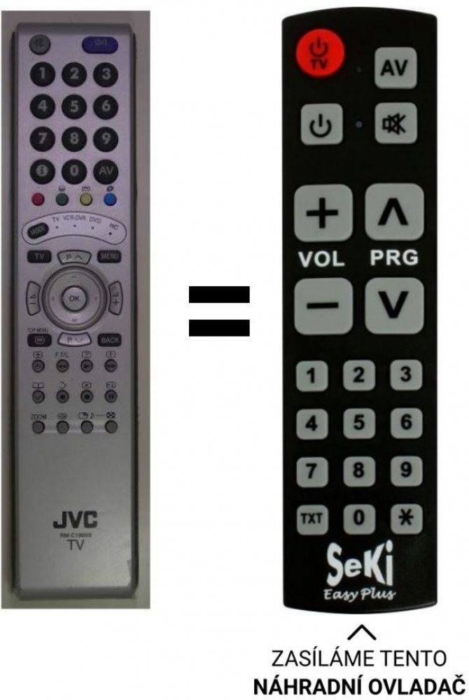 POUZE ZÁKLADNÍ FUNKCE. Náhradní dálkový ovladač za RM-C1900s, RMC1900S pro ovládání TV. Například pro modely JVC LT-26E70BU, LT-32E70BU, LT-32R70BU, LT-32R70SU, LT-37E70BU, LT-37R70BU, LT-37R70SU, LT26R70BU, LT26R70SU LT-32R70LT-40S70BULT-40S70BULT-40S70SULT-40S70SULT-40S70SZLT-40S70ZULT-40S70ZULT-46Z70BLT-46Z70BULT-46Z70BU