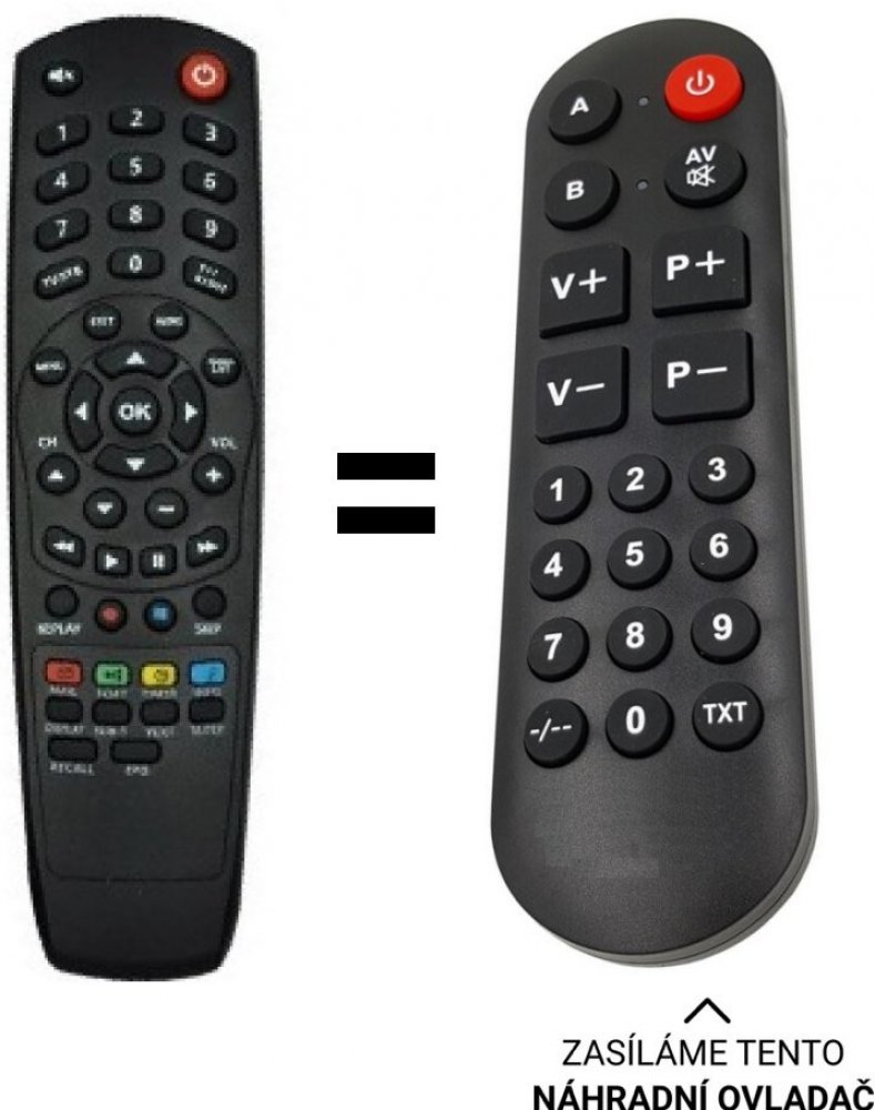 POUZE ZÁKLADNÍ FUNKCE. BEZ ZADÁVÁNÍ KÓDŮ náhradní dálkový ovladač pro seniory, ale stejných funkcí jako originální ovladač pro