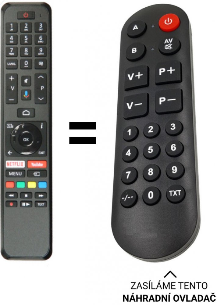POUZE ZÁKLADNÍ FUNKCE. Náhradní dálkový ovladač pro orava LT-ANDR24 1224, LT-ANDR32 1224A Tento dálkový ovladač nemá tlačítko pro hlasové vyhledávání.