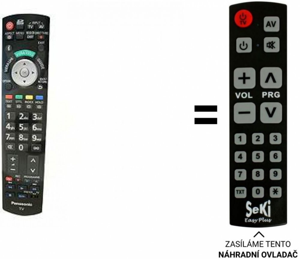 POUZE ZÁKLADNÍ FUNKCE. PANASONIC náhradní dálkový ovladač BEZ ZADÁVÁNÍ KÓDŮ. Má JEN ZÁKLADNÍ FUNKCE. pro:TX-P65V10E, TX-P58V10E, TX-P54Z11E, TX-P50V10E, TX-P46Z11E, TX-P46G15E, TX-P42V10E, TX-P42G15E, TX-P42G15E, TX-L37V10E, TX-L32V10E, TX-L37G15E, TX-P54Z11E, TX-P46Z11E, TX-P50V10E, TX-P42V10E, TX-P46G15E, TX-P42G15E, TXL32V10E, TX-L32V10E TX-P65V10E, TX-P58V10E, TX-P54Z11E, TX-P50V10E, TX-P46Z11E, TX-P46G15E, TX-P42V10E, TX-P42G15E, TX-P42G15E, TX-L37V10E, TX-L32V10E, TX-L37G15E, TX-P54Z11E, TX-P46Z11E, TX-P50V10E, TX-P42V10E, TX-P46G15E, TX-P42G15E
