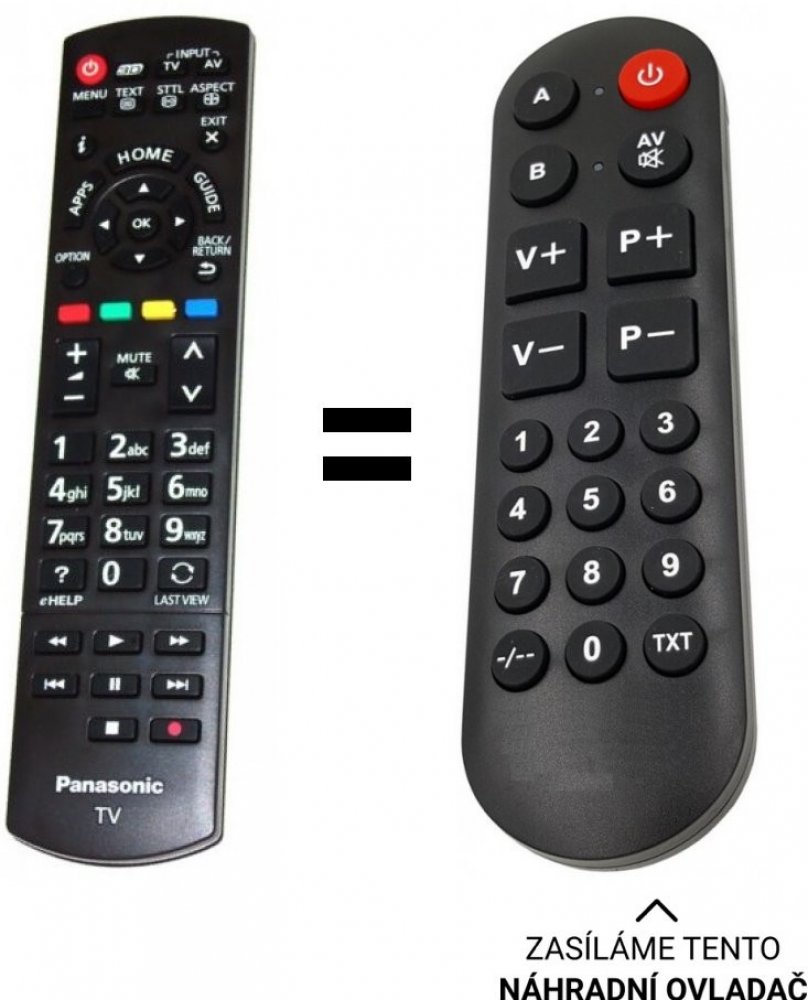 POUZE ZÁKLADNÍ FUNKCE. BEZ ZADÁVÁNÍ KÓDŮ. Náhradní dálkový ovladač panasonic. TX-L42ET60E, TX-L42ET60Y, TX-L42ETW60, TX-L47ET60B, TX-L47ET60E, TX-L47ET60Y, TX-L47ETW60, TX-L50ET60B, TX-L50ET60E, TX-L50ET60Y, TX-L50ETW60, TX-L55ET60B, TX-L55ET60E, TX-L55ET60Y, TX-L55ETW60, TX-LR42ET60, TX-LR47ET, TX-P55ST60E, TX-40AS640E, TX-48AS640E, TX48AX630E, TX-48AX630E, TX-40AX630E, TX-48AX630E,TX-55AX630E TX-L42ET60E, TX-L42ET60Y, TX-L42ETW60, TX-L47ET60B, TX-L47ET60E, TX-L47ET60Y, TX-L47ETW60, TX-L50ET60B, TX-L50ET60E, TX-L50ET60Y, TX-L50ETW60, TX-L55ET60B, TX-L55ET60E, TX-L55ET60Y, TX-L55ETW60, TX-LR42ET60, TX-LR47ET60, TX-LR50ET60, TX-LR55ET60, TX-P42ST60B, TX-P42ST60E, TX-P42ST60Y, TX-P42STW60, TX-P65ST60, TX-P42ST60