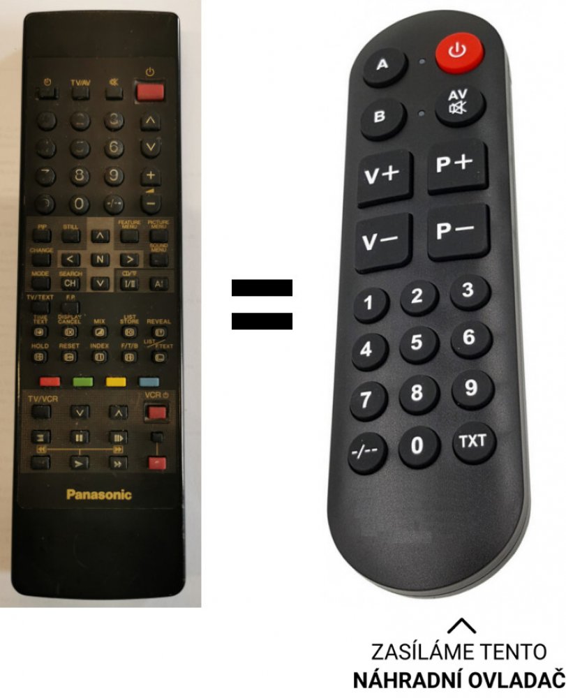 POUZE ZÁKLADNÍ FUNKCE. Náhradní dálkový ovladač pro TV Panasonic a COMBI VCR+TV Panasonic. Nahrazuje všechny tvarově podobné ovladače.