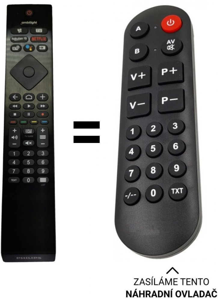 POUZE ZÁKLADNÍ FUNKCE. PHILIPS náhradní dálkový ovladač NEPOTŘEBUJE KÓDY Například pro 58PUS8505, 50PUS8505
