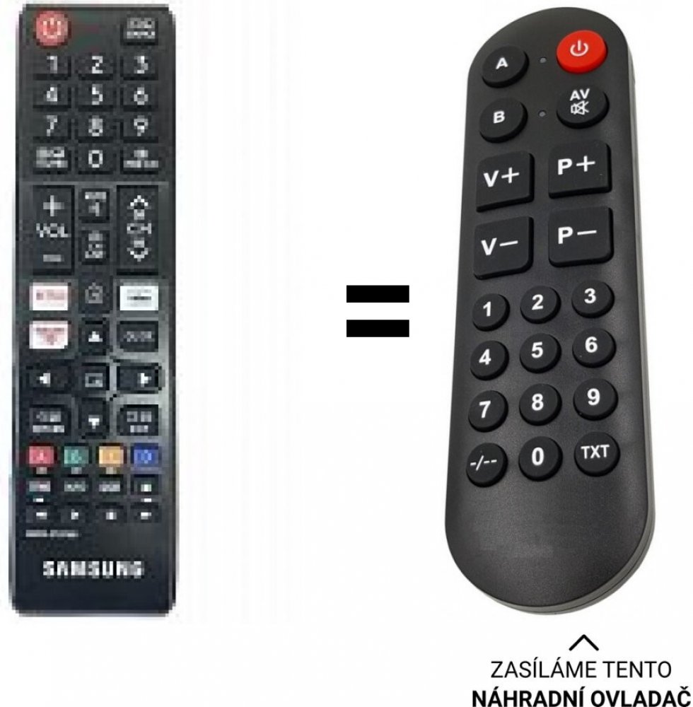 POUZE ZÁKLADNÍ FUNKCE. Samsung náhradní dálkový ovladač. NEPOTŘEBUJE KÓDY.