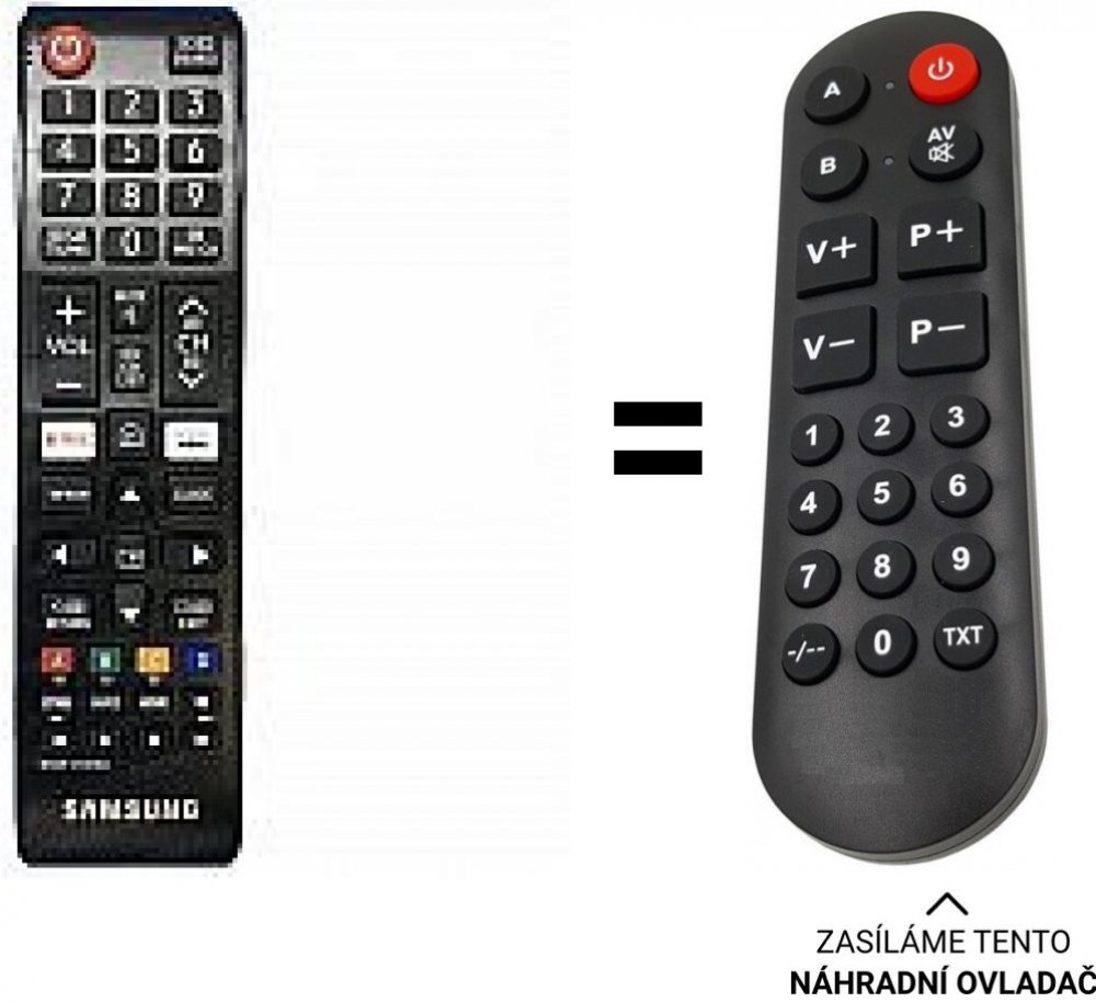 POUZE ZÁKLADNÍ FUNKCE. Samsung náhradní dálkový ovladač. NEPOTŘEBUJE KÓDY.