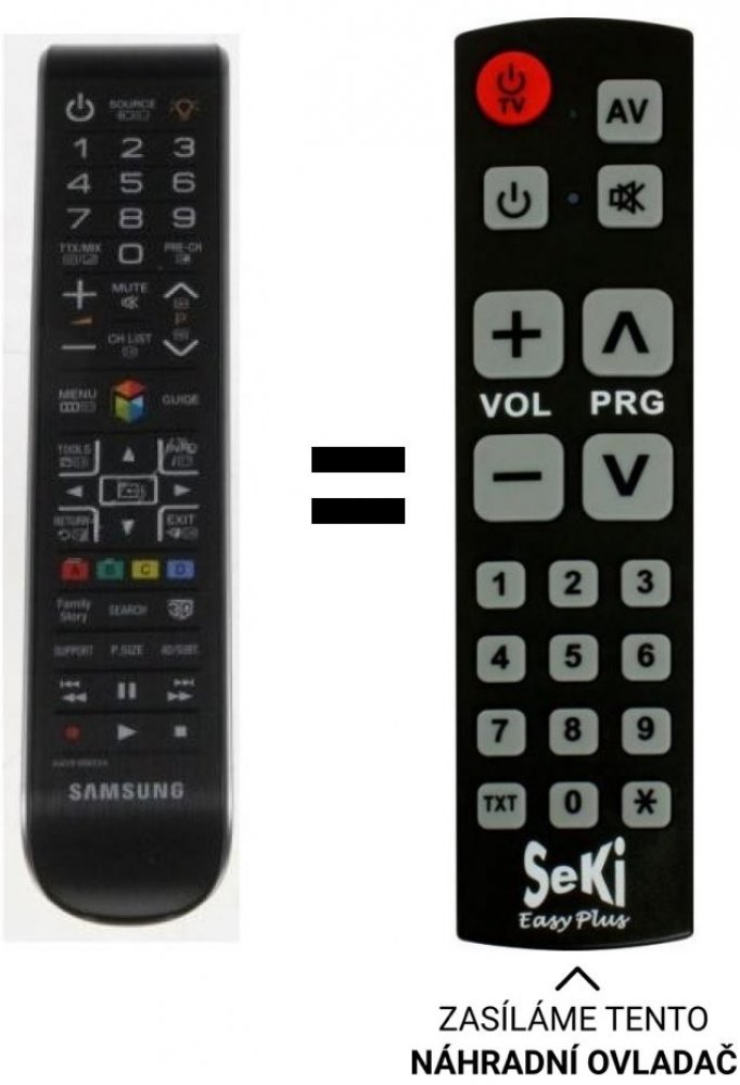 POUZE ZÁKLADNÍ FUNKCE. Náhradní dálkový ovladač Samsung. TM1270 BEZ ZADÁVÁNÍ KÓDŮ Pro modely: UE32ES6750, UE32ES6750SXZG, UE32ES6750S, UE40ES6750, UE40ES6750SXZG, UE40ES6760S, UE40ES6750S, UE40ES6760, UE40ES6760SXZG, UE46ES6760, UE46ES6760SXZG , UE46ES6760S UE32ES6750, UE32ES6750SXZG, UE32ES6750S, UE40ES6750, UE40ES6750SXZG, UE40ES6760S, UE40ES6750S, UE40ES6760, UE40ES6760SXZG, UE46ES6760, UE46ES6...