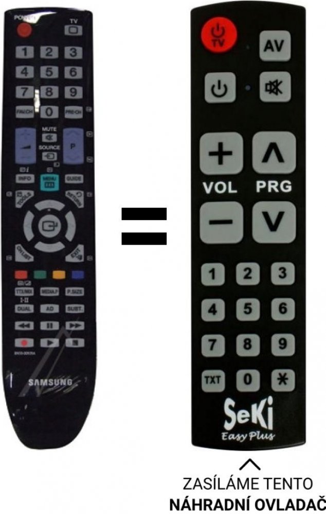 POUZE ZÁKLADNÍ FUNKCE. Samsung náhradní dálkový ovladač BEZ ZADÁVÁNÍ KÓDŮ Náhradní dálkový ovladač Samsung. Má JEN ZÁKLADNÍ FUNKCE. Například pro modely LE32C670M, LE40C670M, LE40C679M, LE32B550 LE37B550 LE40B620 LE40B550 LE46B620 LE46B550 PS50B550 PS50B560T7W. Nahrazuje také BN59-00936A pro UE40B6000VW, UE32B6000VW