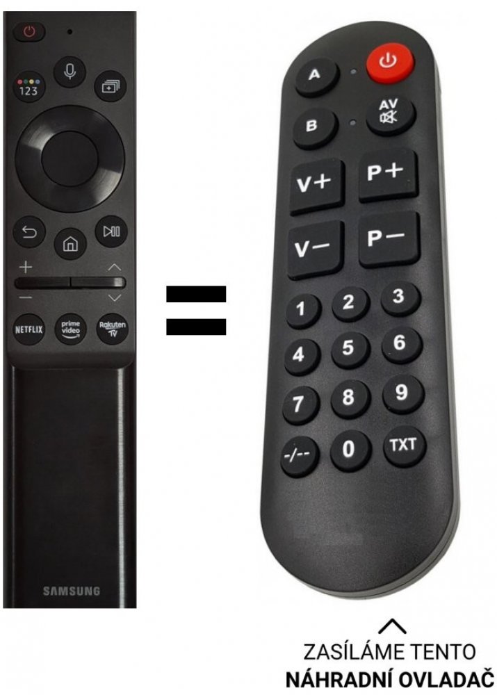 POUZE ZÁKLADNÍ FUNKCE. Samsung náhradní dálkový ovladač. NEPOTŘEBUJE KÓDY.