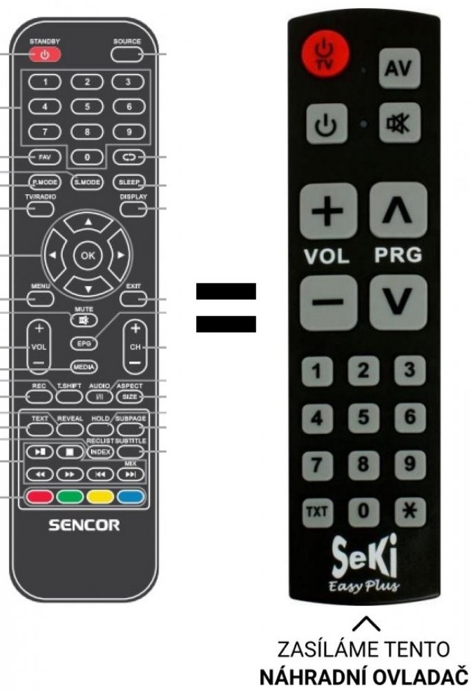 POUZE ZÁKLADNÍ FUNKCE. Sencor BEZ ZADÁVÁNÍ KÓDŮ Náhradní dálkový ovladač sencor. Pouze pokud jste měli vyobrazený ovladač. SLE3214M4 , SLE2814TCS
