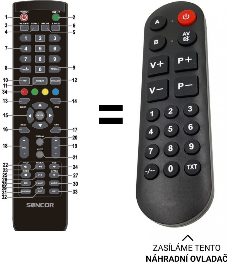 POUZE ZÁKLADNÍ FUNKCE. Originální dálkový ovladač Sencor. pro modely televizorů: Sencor SLE3261TCS