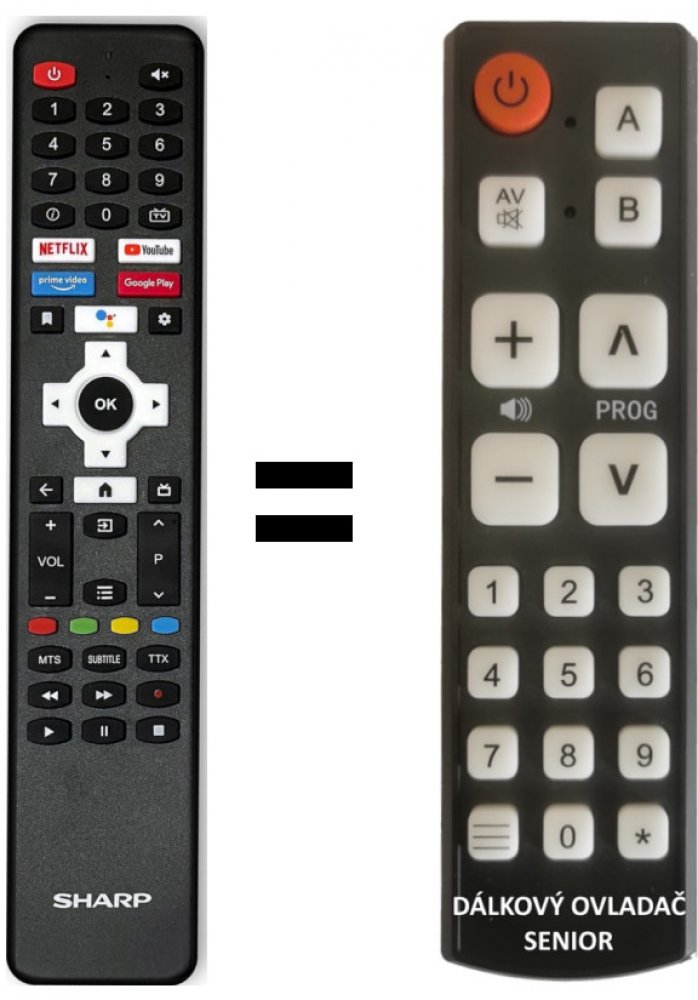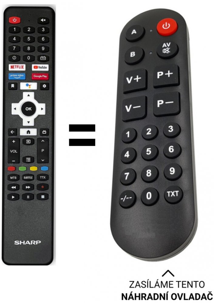 POUZE ZÁKLADNÍ FUNKCE. náhradní dálkový ovladač pro seniory pro sharp bez mikrofonu.