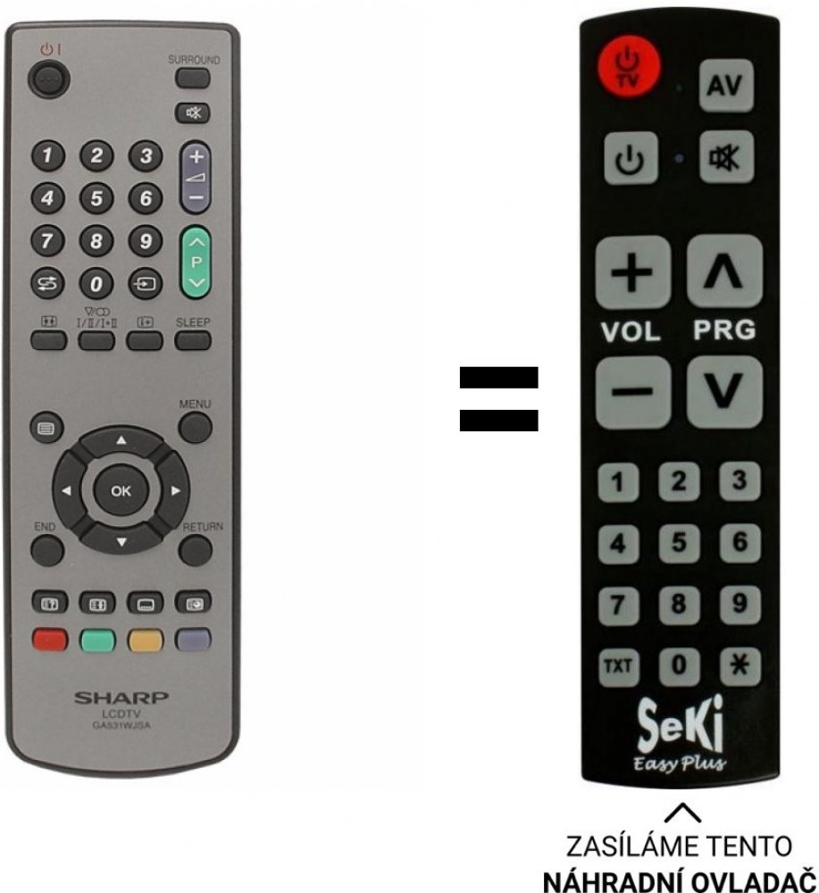 POUZE ZÁKLADNÍ FUNKCE. Sharp náhradní dálkový ovladač BEZ NUTNOSTI ZADÁVÁNÍ KÓDŮ Sharp RRMCGA531WJSA pro modely: