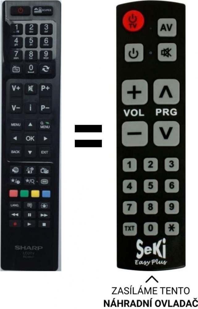 LC-32LE350V-BK Náhrazuje dálkové ovladače RC4847 Naříklad pro modely lcdtv SHARP LC-32LE350E-BK LC-39LE350E-BK -HW, LC-39LE350E LC-32LE350E - LC-32LE350E-HW - LC-39LE350E-HW LC-32LE352E LC-39LE352E-BK, LC-32LE351E LC-39LE351E, LC-32LE352E-BK.