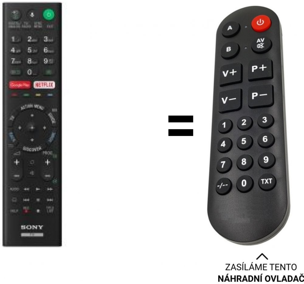 POUZE ZÁKLADNÍ FUNKCE. SONY náhradní dálkový ovladač. BEZ ZADÁVÁNÍ KÓDŮ.