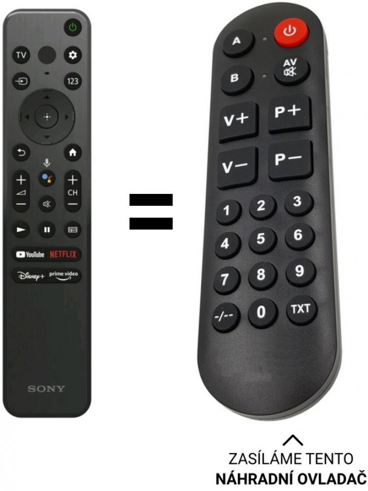 POUZE ZÁKLADNÍ FUNKCE. Sony náhradní dálkový ovladač pro TV Sony. BEZ ZADÁVÁNÍ KÓDŮ.