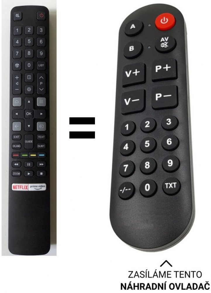 POUZE ZÁKLADNÍ FUNKCE. Náhradní dálkový ovladač TCL, THOMSON například pro RC802N YAI4, 55S6500FS, 49S6500FS, 43S6500FS, 40S6500 FS, 32S6500FS, 32S5200, 32S5400AF, 40S5403A. 32L5A.