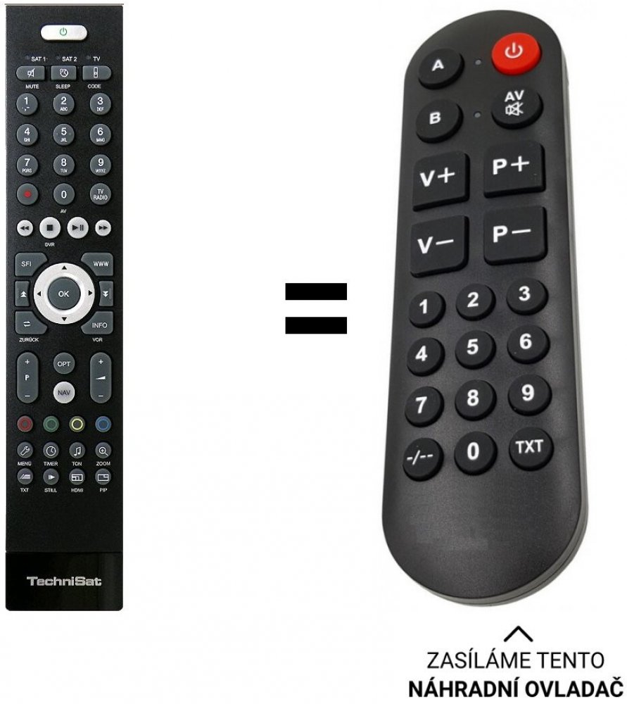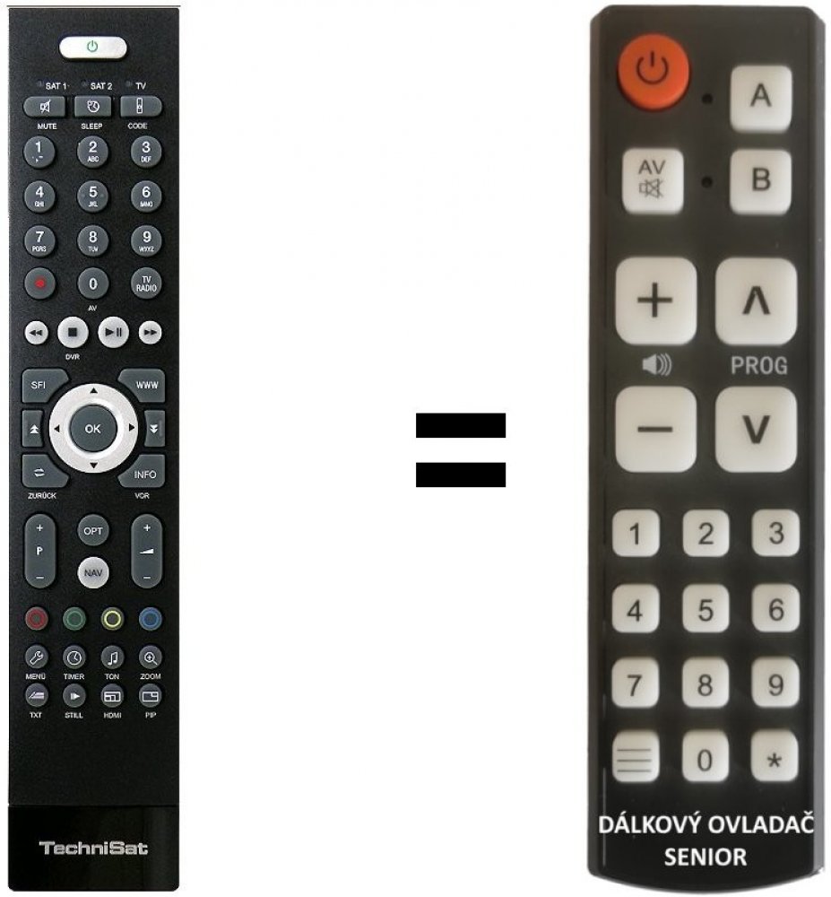 POUZE ZÁKLADNÍ FUNKCE. Náhradní dálkový ovladač Technisat. NEPOTŘEBUJE KÓDY