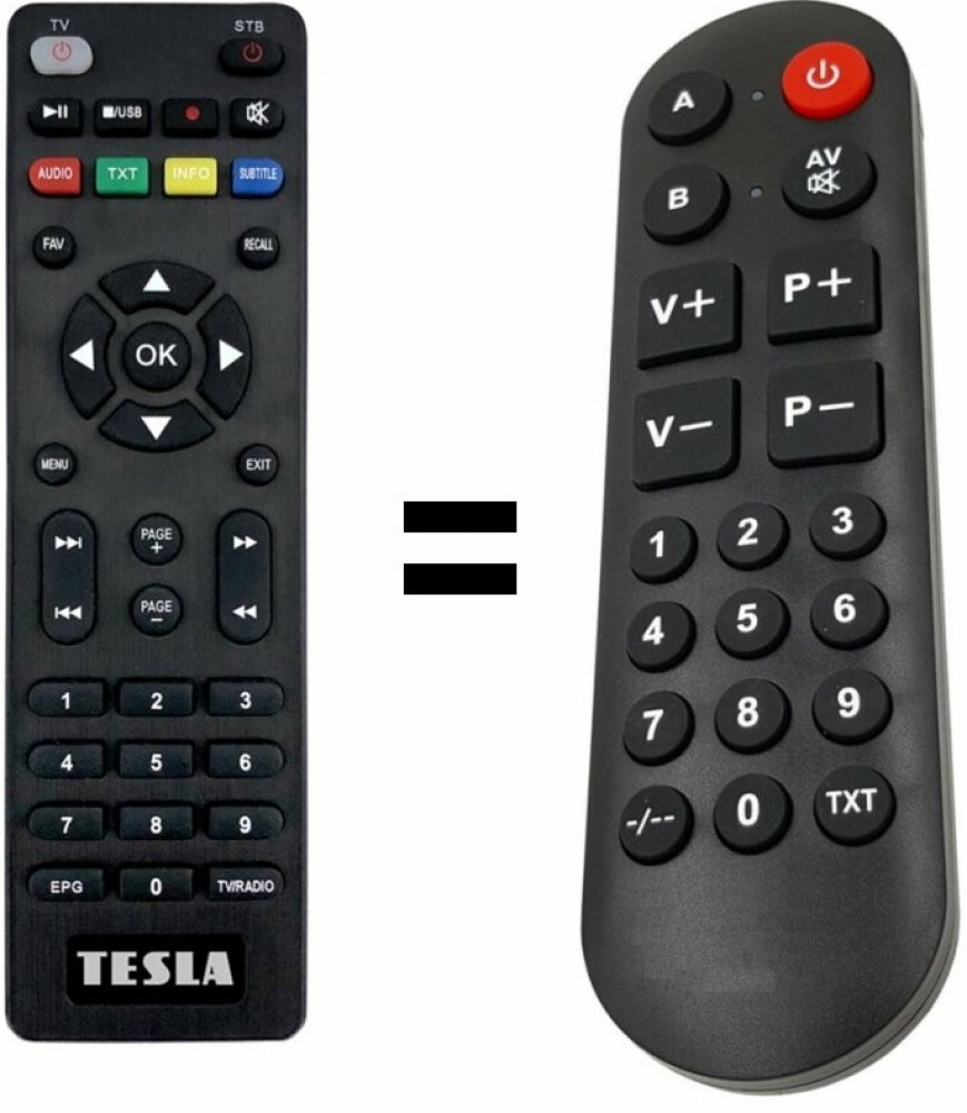 POUZE ZÁKLADNÍ FUNKCE. náhradní dálkový ovladač pro seniory. NEPOTŘEBUJE KÓDY. Originální dálkový ovladač TESLA TE300 TE301 originální dálkový ovladač
