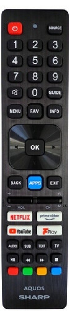 Originální dálkový ovladač Sharp SHW/RMC/0137N s pokročilými chytrými funkcemi. Originální dálkový ovladač s přímými tlačítky pro populární streamovací služby včetně NETFLIX, Prime Video, YouTube a FPlay pro okamžitý přístup k vašemu oblíbenému obsahu.