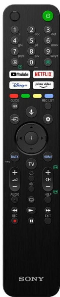 Sony originální dálkový ovladač. Funguje pro řady W800, X73K, X80J, X81J, X82J, X85J, X90J, X90S, X92J, X93J, X94J, A80J. Například KD-32W800, KD-43X73K, KD-50X73K, KD-43X81J, KD-50X81J, KD-55X81J, KD-65X81J, KD-75X81J, KD-43X85J, KD-50X85J, KD-55X85J, KD-65X85J, KD-75X85J, KD-85X85J, XR-50X90J, XR-55X90J, XR-65X90J, XR-75X90J, XR-50X90S, XR-55X90S, XR-55A80J, XR-65A80J, XR-77A80J
