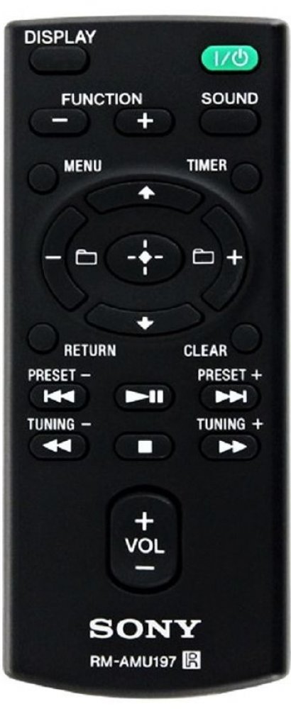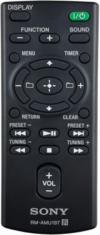 Značkový originální dálkový ovladač SONY RM-AMU197 (RMAMU197). Dálkový ovladač byl vyvinut speciálně na míru pro tyto modely značky SONY:CMT-X5CD, CMT-X7CD, CMT-X7CDB, CMTX5CD, CMTX7CD, CMTX7CDB, MT-X5CDB, MTX5CDB. (Nemusí zde být uvedeny úplně všechny kompatibilní modely. Pokud si nejste jisti, sdělte nám svůj model (použijte online chat, e-mail, telefon), neprodleně zkontrolujeme a ověříme, zda je tento ovladač kompatibilní s Vaším přístrojem. Za poskytnutou informaci ručíme.) Jedná se o ORIGINÁLNÍ dálkové ovladání, proto nevyžaduje žádné párování, nastavování ani žádné kódy. Stačí vložit baterie a funguje se všemi výše uvedenými modely.