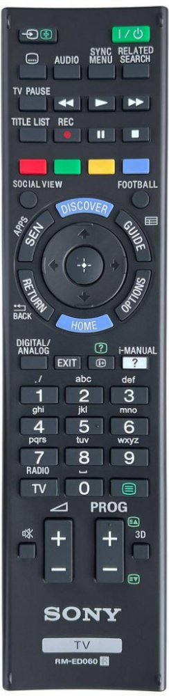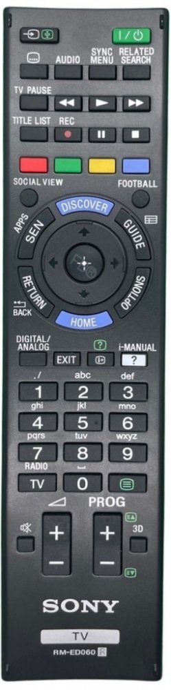 Značkový originální dálkový ovladač SONY RM-ED060 (RMED060). Je určen pro tyto modely SONY:KD-65X8500B, KD-65X9005B, KD-65X9500B, KD65X8500B, KD65X9005B, KD65X9500B, KDL-32HX750, KDL-32W700B, KDL-40HX750, KDL-42W655A, KDL-42W700B, KDL-42W805B, KDL-42W815B, KDL-42W828B, KDL-42W829B, KDL-46HX750, KDL-50W800B, KDL-50W805B, KDL-55W805B, KDL-55W815B, KDL-55W828B, KDL-55W829B, KDL-55W950B, KDL-55W955B, KDL-5HX750, KDL-60NX725, KDL32W700B, KDL42W655A., KDL42W700B, KDL50W800B, KDL55W815B, KDL55W950B, KDL55W955B, KDL60NX725. (Nemusí zde být uvedeny úplně všechny kompatibilní modely. Pokud si nejste jisti, sdělte nám svůj model (použijte online chat, e-mail, telefon), neprodleně zkontrolujeme a ověříme, zda je tento ovladač kompatibilní s Vaším přístrojem. Za poskytnutou informaci ručíme.) ?Dálkový ovladač je originální dálkový ovladač od výrobce SONY✔Jedná se o ORIGINÁLNÍ dálkové ovladání, proto nevyžaduje žádné párování, nastavování ani žádné kódy. Stačí vložit baterie a funguje se všemi výše uvedenými modely.