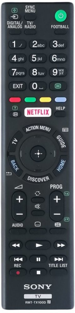 Značkový originální dálkový ovladač SONY RMT-TX100D (RMTTX100D). Dálkový ovladač byl vyvinut speciálně na míru pro tyto modely značky SONY:43W800D, KD-43X83, KD-43X8307C, KD-43X8309C, KD-49X8005C, KD-49X8305C, KD-49X8308C, KD-49X8309C, KD-55S8505C, KD-55X8005C, KD-55X8505C, KD-55X8507C, KD-55X8508C, KD-55X8509C, KD-55X9005C, KD-65S8505C, KD-65X8505C, KD-65X8507C, KD-65X8508C, KD-65X8509C, KD-65X9305C, KD-75X8505C, KD43X83, KD43X8307C, KD43X8309C, KDL-32WD759, KDL-43W755C, KDL-43W756C, KDL-43W805C, KDL-43W808C, KDL-43W950D, KDL-50W755C, KDL-50W756C, KDL-50W805C, KDL-50W807C, KDL-50W809C, KDL-55W756C, KDL-55W805C, KDL-55W808C, KDL-55W809C, KDL-65W855C, KDL-65W859C, KDL-75W855C, KDL43W808C, KDL50W800C, KDL50W800D, KDL50W809C, KDL55W755C, KDL55W800C, KDL55W808C, KDL65W850C, KDL75W850C, KS65S8505, RMT-TX100D, XBR43X830C, XBR49X850C, XBR55X810C, XBR55X850C, XBR55X900C, XBR65X810C, XBR65X850C, XBR65X900C, XBR65X930, XBR65X930C, XBR75X850C, XBR75X910C, XBR75X940C. (Nemusí zde být uvedeny úplně všechny kompatibilní modely. Pokud si nejste jisti, sdělte nám svůj model (použijte online chat, e-mail, telefon), neprodleně zkontrolujeme a ověříme, zda je tento ovladač kompatibilní s Vaším přístrojem. Za poskytnutou informaci ručíme.) Jedná se o ORIGINÁLNÍ dálkové ovladání, proto nevyžaduje žádné párování, nastavování ani žádné kódy. Stačí vložit baterie a funguje se všemi výše uvedenými modely.