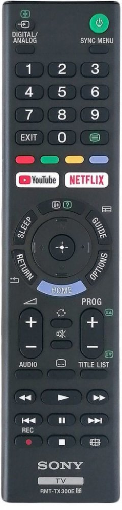 Nový originální dálkový ovladač SONY RMT-TX300E (RMTTX300E). Dálkový ovladač je určen pro tyto modely SONY: KD-43X7000E, KD-43X720E, KD-43XF7005, KD-49EX7077, KD-49X7000E, KD-49X720E, KD-49XE7077, KD-49XE8396, KD-49XF7005, KD-55X7000E, KD-55X720E, KD-55XE7077, KD-55XE7096, KD-60X6700E, KD-65X7000E, KD-65XE7096, KD43X7000E, KD43XF7005 , KD49X7000E, KD49XE7077, KD49XF7005, KD49XG7077, KD55X7000E, KD55XE7005, KD55XE7077, KD55XE7096, KD60X6700E, KD65X7000E, KD65XE7096 , KDL-32RE405, KDL-32W660E, KDL-32WE615, KDL-40W660E, KDL-40WE663BU, KDL-40WE665, KDL-40WE754, KDL-40WE755, KDL-43W660F, KDL-43WE755, KDL-43WF665, KDL-48W585B, KDL-49W660E, KDL-49WE660, KDL-49WE665, KDL-50WF665, KDL32RE405, KDL32W660E, KDL40W660E, KDL40WE665, KDL43WE755, KDL43WF665, KDL49W660E, KDL49WE660. (Nemusí zde být uvedeny úplně všechny kompatibilní modely. Pokud si nejste jisti, sdělte nám svůj model (použijte online chat, e-mail, telefon), neprodleně zkontrolujeme a ověříme, zda je tento ovladač kompatibilní s Vaším přístrojem. Za poskytnutou informaci ručíme.) Plně nahrazuje také tyto dálkové ovladače: RMT-TX300P, RMT-TX300T, RMT-TX300U Jedná se o ORIGINÁLNÍ dálkové ovladání, proto nevyžaduje žádné párování, nastavování ani žádné kódy. Stačí vložit baterie a funguje se všemi výše uvedenými modely.