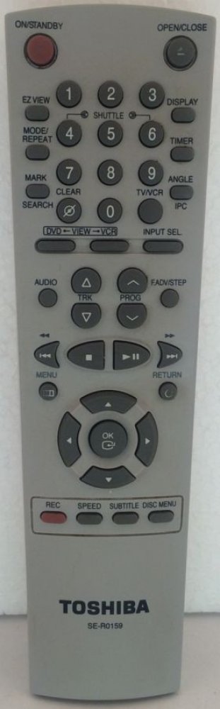 Značkový originální dálkový ovladač TOSHIBA SE-R0159 (SER0159). Je určen pro tyto modely TOSHIBA:MDVD/VCR DUAL DECK SD-36 VESE , MDVD/VCR DUAL DECK SD-36VESE, SD3107E, SD3108E. (Nemusí zde být uvedeny úplně všechny kompatibilní modely. Pokud si nejste jisti, sdělte nám svůj model (použijte online chat, e-mail, telefon), neprodleně zkontrolujeme a ověříme, zda je tento ovladač kompatibilní s Vaším přístrojem. Za poskytnutou informaci ručíme.) ?Dálkový ovladač je originální dálkový ovladač od výrobce TOSHIBA✔Jedná se o ORIGINÁLNÍ dálkové ovladání, proto nevyžaduje žádné párování, nastavování ani žádné kódy. Stačí vložit baterie a funguje se všemi výše uvedenými modely.
