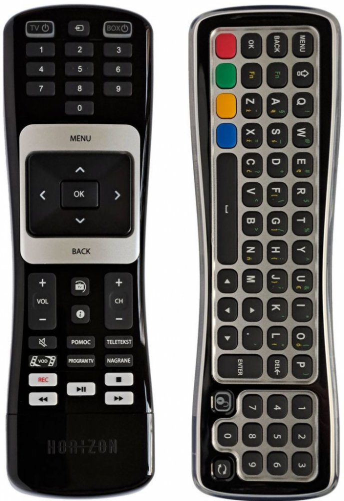 Nový originální dálkový ovladač UPC RC2094501 HORIZON. Dálkový ovladač je určen pro tyto modely UPC: ARRIS DMC7002KLG, HD DVR MEDIABOX PACE DMC7002, HORIZON DMC7002. (Nemusí zde být uvedeny úplně všechny kompatibilní modely. Pokud si nejste jisti, sdělte nám svůj model (použijte online chat, e-mail, telefon), neprodleně zkontrolujeme a ověříme, zda je tento ovladač kompatibilní s Vaším přístrojem. Za poskytnutou informaci ručíme.) Jedná se o nové ORIGINÁLNÍ RF (rádiové) dálkové ovládání, proto je třeba jej spárovat s vašim zařízením (všechny rádiové dálkové ovladače musí být párovány). Metoda párování je popsána v uživatelské příručce. HLASOVÉ OVLÁDÁNÍ: NE