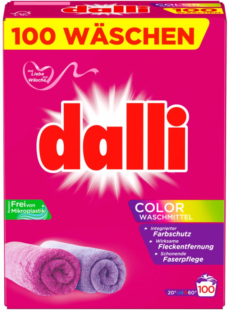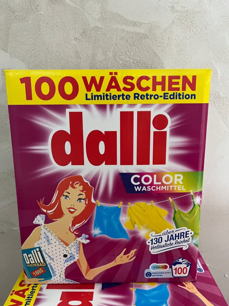 Německý Dalli profesionální prací prášek na barevné prádlo s formulí na udežení barevnosti prádla. Dalli je významná a oblíbená německá firma, která již více jak 100 let vyrábí především prací prášky. Prací prášek má výborné čistící vlastnosti, dobře se rozpouští, krásně voní a navíc má novou formuli proti odolným skvrnám na prádle. Vhodný i na praní ubrusů, ponožek a silně znečištěného prádla například z kuchyní atd... Dalli prací prášek na barevné prádlo je koncentrovaný krásně voní výborně čistí a pere silně znečištěné prádlo vhodný i pro profesionální použití formule na udržení barevnosti prádla Farbchutz. Ekologicky šetrný prací prášek dle přísných německých norem Balení v krabici s poutkem na přenos.