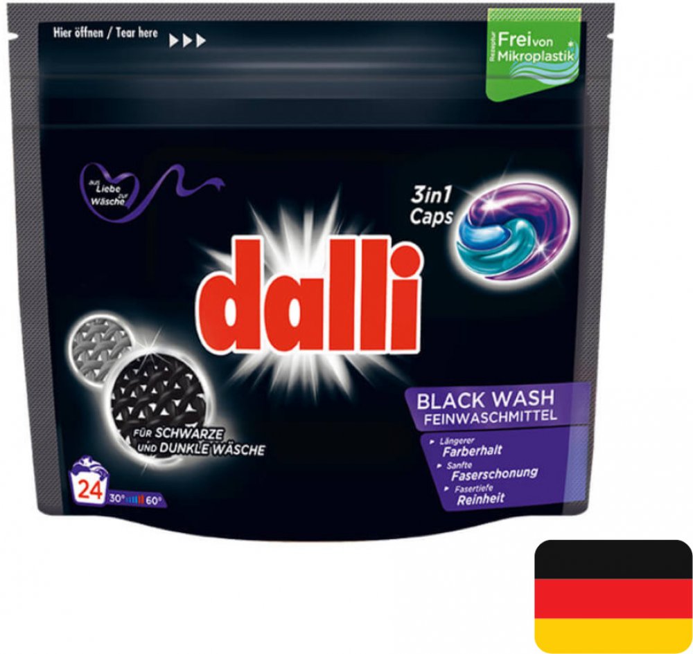 Zachovejte intenzitu černé a tmavých odstínů s Dalli Black Wash kapslemi na praní. Tyto kapsle jsou speciálně vyvinuté pro tmavé textilie – čistí do hloubky, chrání barvy a zanechávají prádlo krásně svěží. Jednoduše praktické a spolehlivé řešení pro každodenní praní.