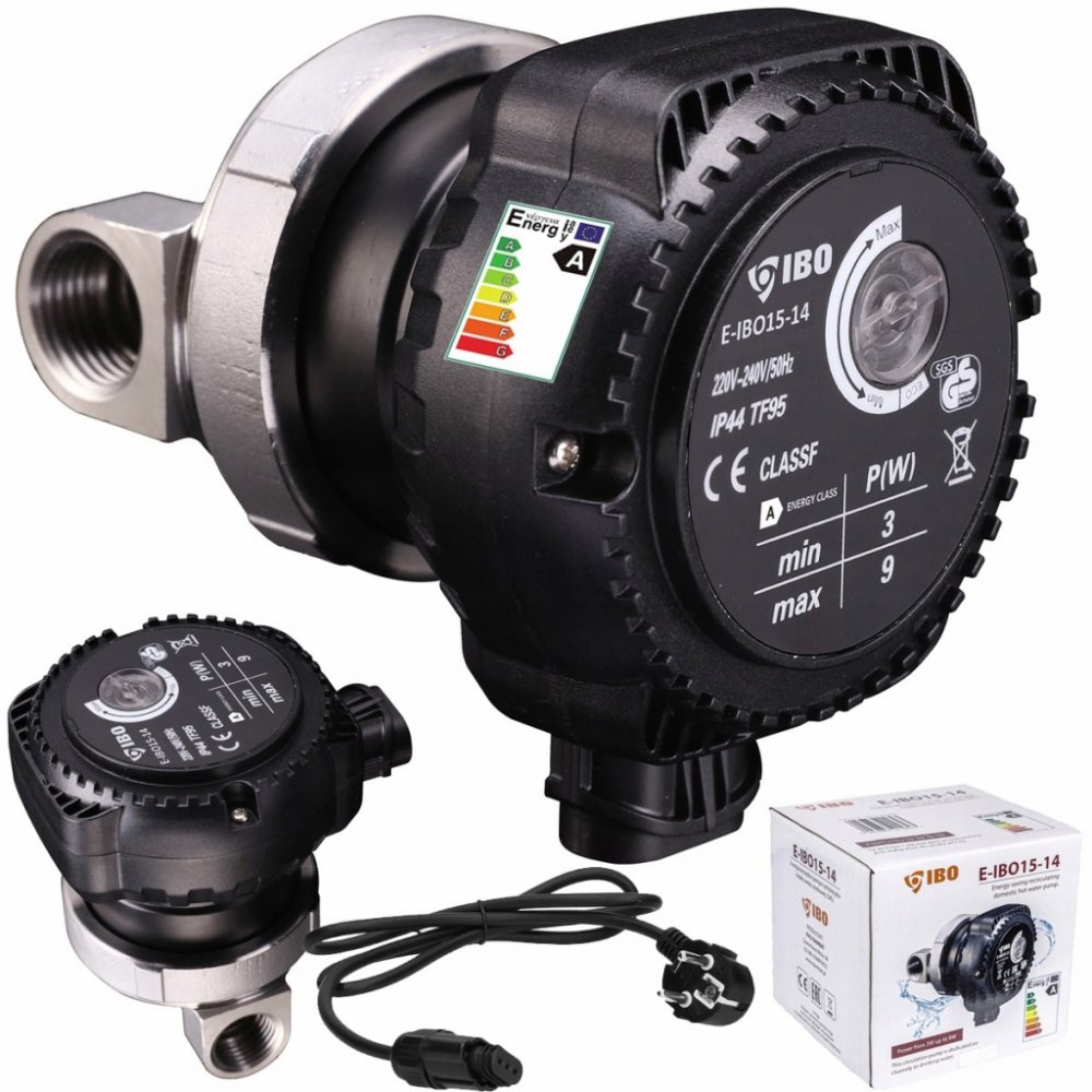 Čerpadlo E-IBO 15-14 je určeno pro nepřetržitý nucený oběh teplé užitkové vody a pro práci v malých topných systémechČerpadlo E-IBO 15-14 je určeno pro nepřetržitý nucený oběh teplé užitkové vody a pro práci v malých topných systémech.Konstrukce čerpadla:díky použití rotoru s trvalým magnetem oproti tradičnímu oběhovému čerpadlu je spotřeba elektrické energie čerpadla E-IBO velmi nízká a v závislosti na parametrech systému může dosáhnout jen 3 Wsplňující požadavky na čerpadla energetické třídy Apoužití cirkulačních čerpadel přispívá ke značnému snížení spotřeby vodymožnost automatické nebo manuální úpravy parametrů čerpadla podle vlastností systémusférické oběžné kolo vyrobené z norylu zajišťuje pohyb v různých rovináchkeramický hřídel odolný vůči oděrutěleso z nerezové ocelijednoduchá montáž a zprovozněnínízká úroveň hluku čerpadla a celého systémučerpadlo je vybaveno kabelem s vidlicíPoužití:čerpadlo je určeno k nepřetržitému nucení oběhu teplé užitkové vody a k práci v malých topných systémechčerpadlo lze použít i ve větracích a klimatizačních zařízeníchTechnické parametry:Napájení1~230 V +6%/-10%, 50 Hz PEOchrana motorunení nutná žádná extra ochrana motoruStupeň krytíIP 44Třída izolaceHMaximální vlhkost okolního prostředí≤ 95 %Maximální tlak v systému1 MPa (10 bar)Minimální tlak / sací průtok0,02 MPaAkustický hluk čerpadla v provozu43 dB (A)Maximální teplota prostředí0-40°CRozsah teplot čerpané kapaliny2–95°CRozteč závitů85 mm
