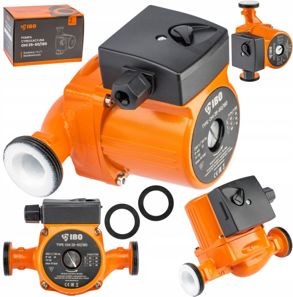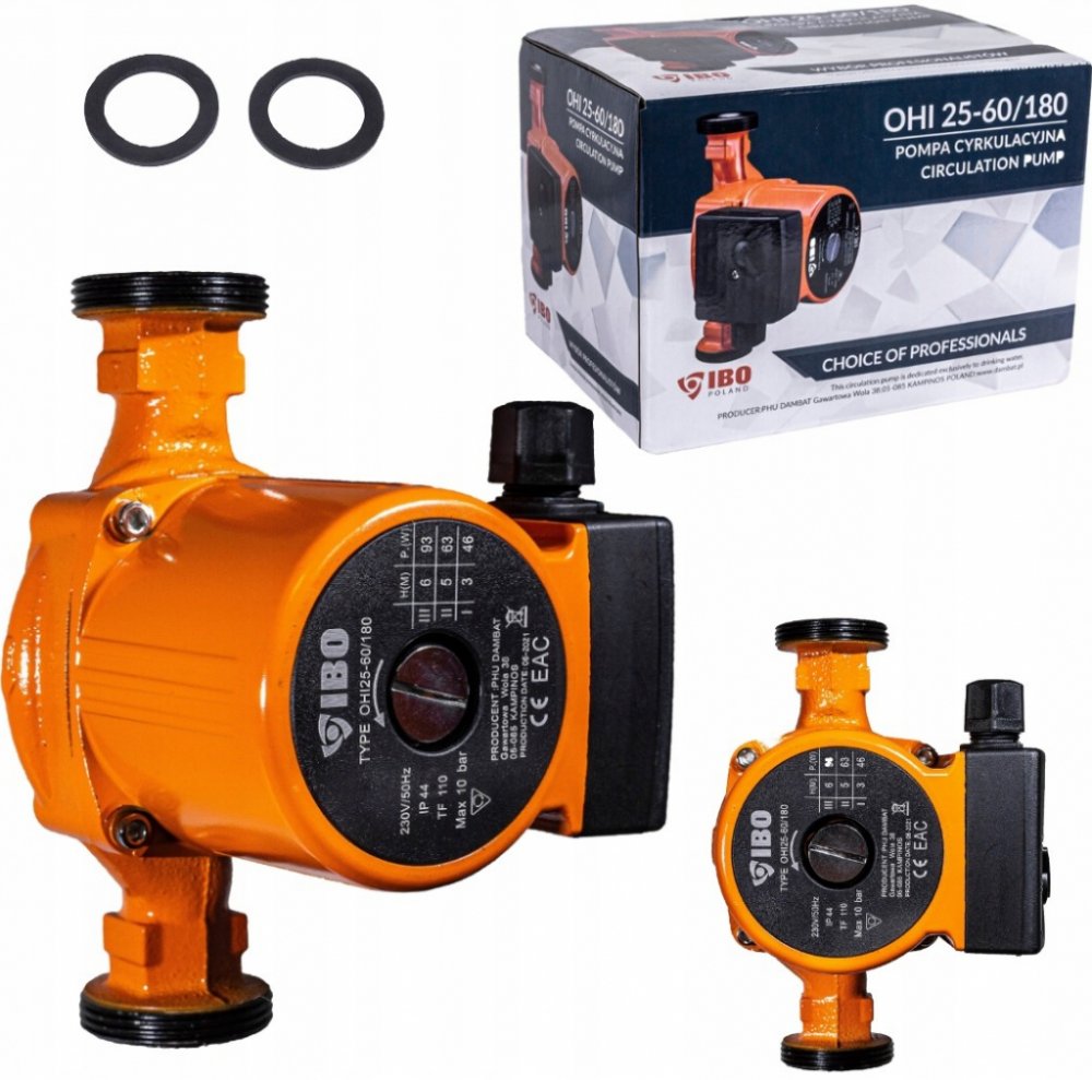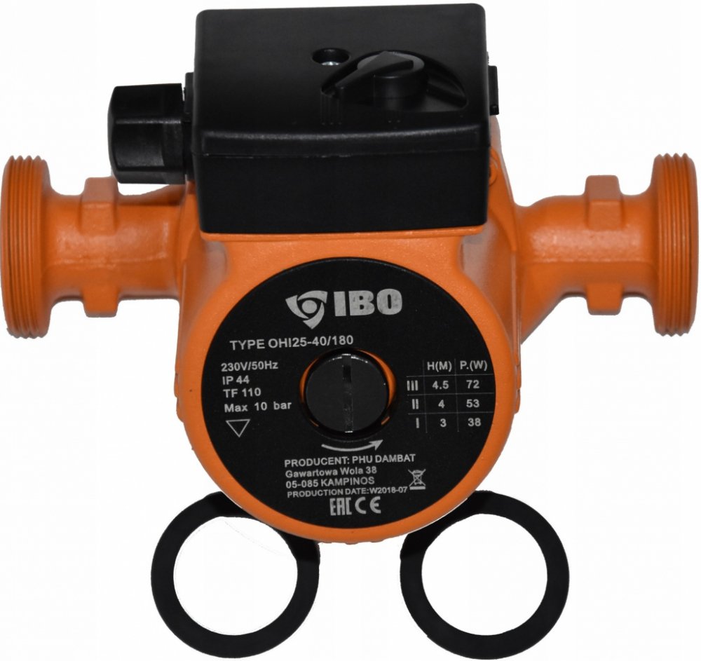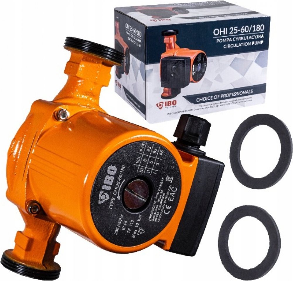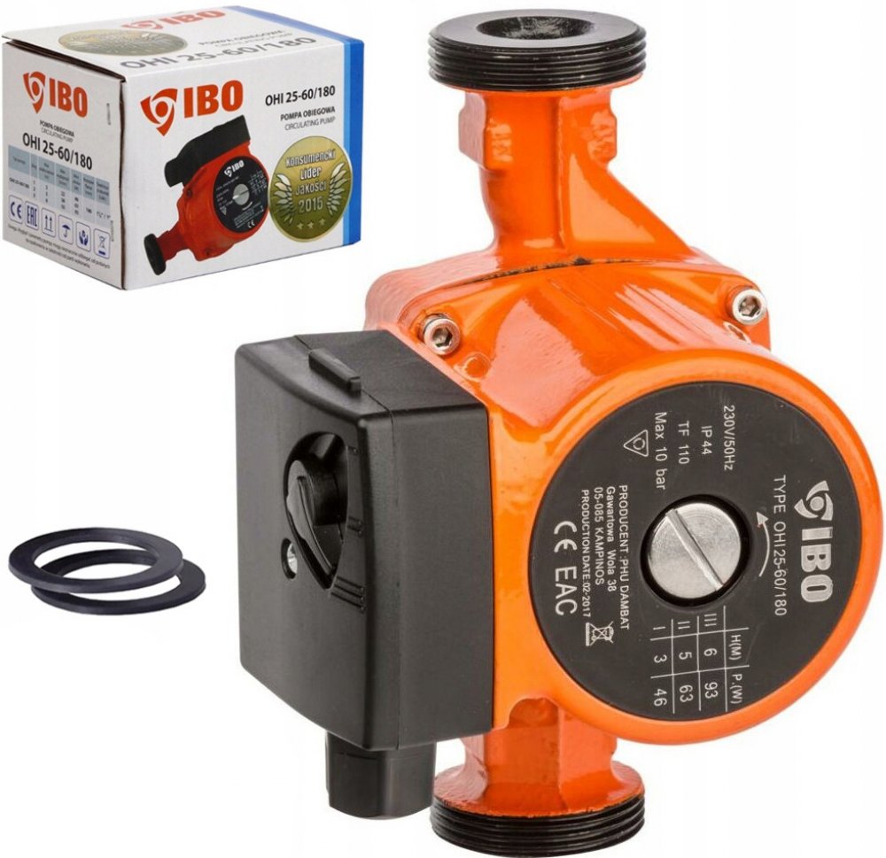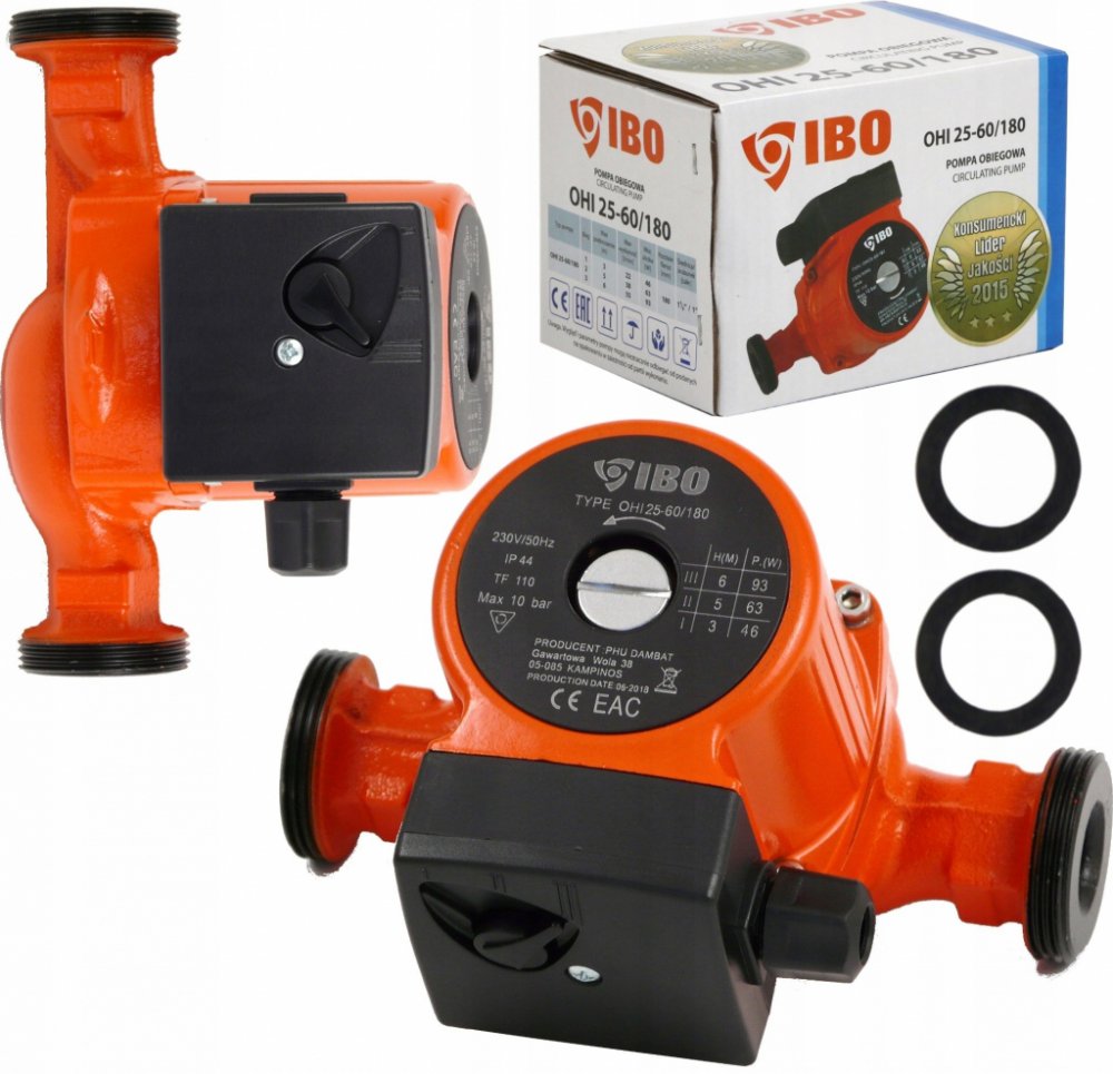 Oběhové čerpadlo IBO OHI 25-60/180mm je určeno k cirkulaci teplé vody, vody v systému ústředního vytápění, v solárních, klimatizačních a chladicích systémech. Čerpadlo je vybaveno přepínačem tří rychlostí mechanického otáčení rotoru motoru, čímž se zabezpečuje optimální spotřeba elektrické energie. Výhody oběhového čerpadla IBO OHI 25-60/180mm: úspora elektrické energie a paliva v kotli kompaktní rozměry jednoduchost použití a instalace dlouhý bezporuchový provoz materiály a díly jsou odolné vůči agresivnímu vodnímu prostředí a nevyžadují dodatečné náklady na údržbu konstrukce umožňuje oddělit řídící jednotku od čerpadla v případě poruchy nebo údržby tichý provoz i při vyšších rychlostech díky použitému materiálu ložiska Technické parametry: Materiál: litina, vrch. vrstva - antikorozní smalt Výkon na základě rýchlosti (1/2/3): 46 / 63 / 93 W Max. průtok na základě rychlosti (1/2/3): 22 / 38 / 55l / min Maximální výtlak (1/2/3): 3m / 5m / 6m Teplota média: 2–110 °C Maximální tlak v potrubí: 10 Bar Stupeň ochrany: IP44 Montážní délka: 180 mm