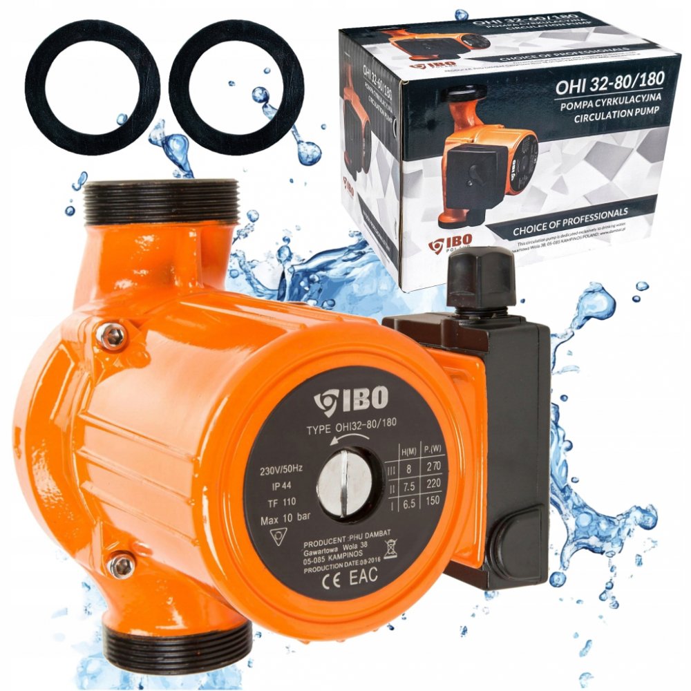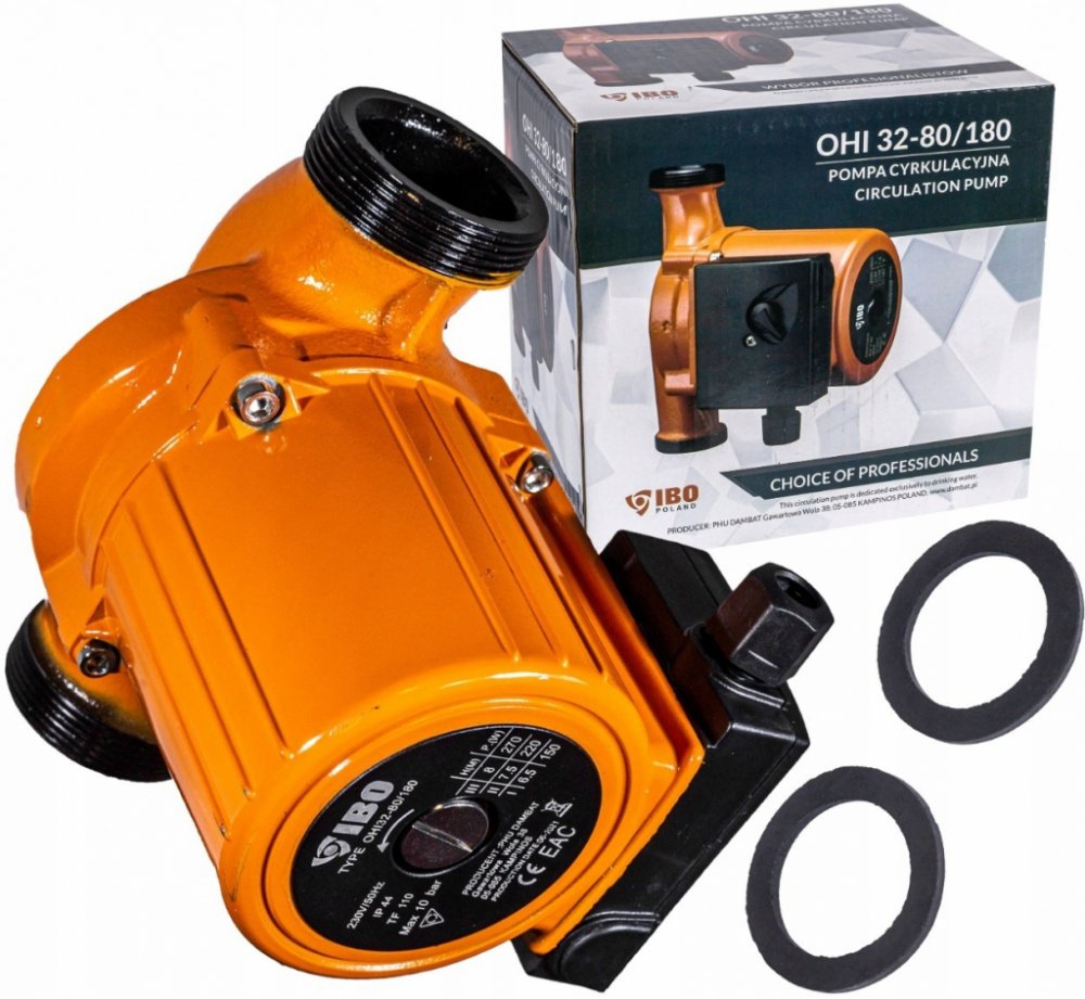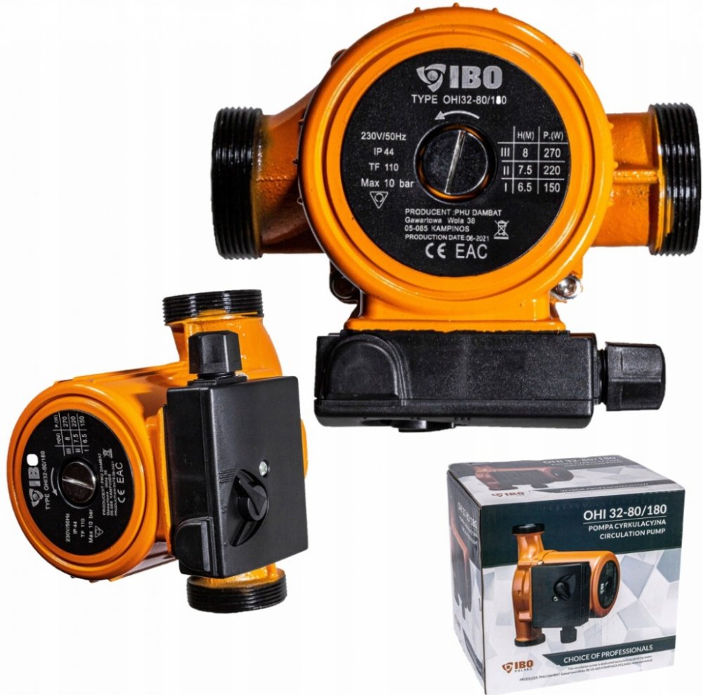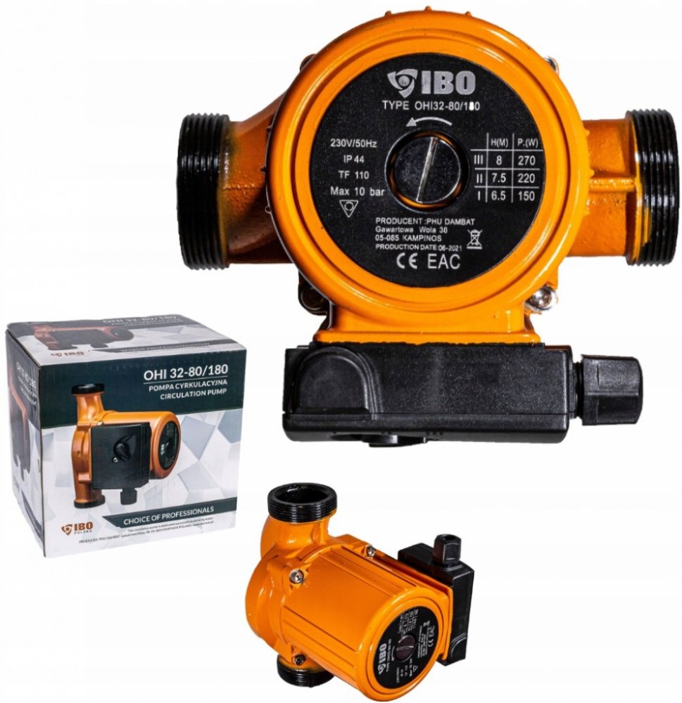 Oběhové čerpadlo IBO OHI 32-80/180mm je určeno k cirkulaci teplé vody, vody v systému ústředního vytápění, v solárních, klimatizačních a chladicích systémech. Čerpadlo je vybaveno přepínačem tří rychlostí mechanického otáčení rotoru motoru, čímž se zabezpečuje optimální spotřeba elektrické energie. Výhody oběhového čerpadla IBO OHI 32-80/180mm: úspora elektrické energie a paliva v kotli kompaktní rozměry jednoduchost použití a instalace dlouhý bezporuchový provoz materiály a díly jsou odolné vůči agresivnímu vodnímu prostředí a nevyžadují dodatečné náklady na údržbu konstrukce umožňuje oddělit řídící jednotku od čerpadla v případě poruchy nebo údržby tichý provoz i při vyšších rychlostech díky použitému materiálu ložiska Technické parametry: Materiál: litina, vrch. vrstva - antikorozní smalt Výkon na základě rýchlosti (1/2/3): 150 / 220 / 270 W Max. průtok na základě rychlosti (1/2/3): 43 / 103 / 160l / min Maximální výtlak (1/2/3): 6,5m / 7,5m / 8m Teplota média: 2–110 °C Maximální tlak v potrubí: 10 Bar Stupeň ochrany: IP44 Montážní délka: 180 mm
