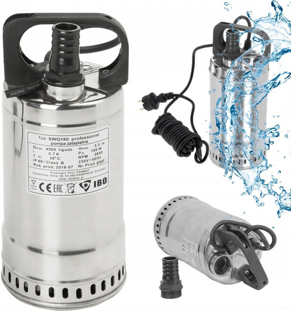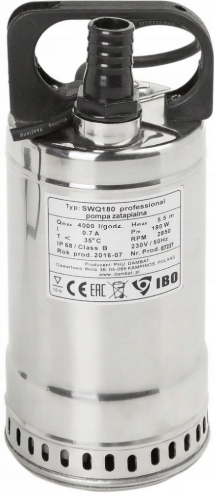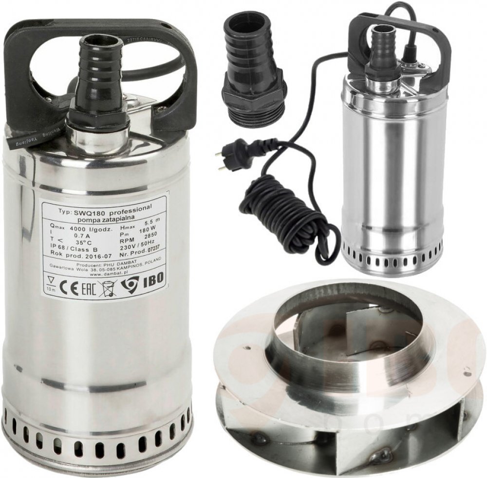 3.5 kg 5.5 m 180 W IBO kalová ponorná 230 V 5.5 m 5 m IP 68 2 mm 180 W 40 °C 1 " elektrická 120 mm