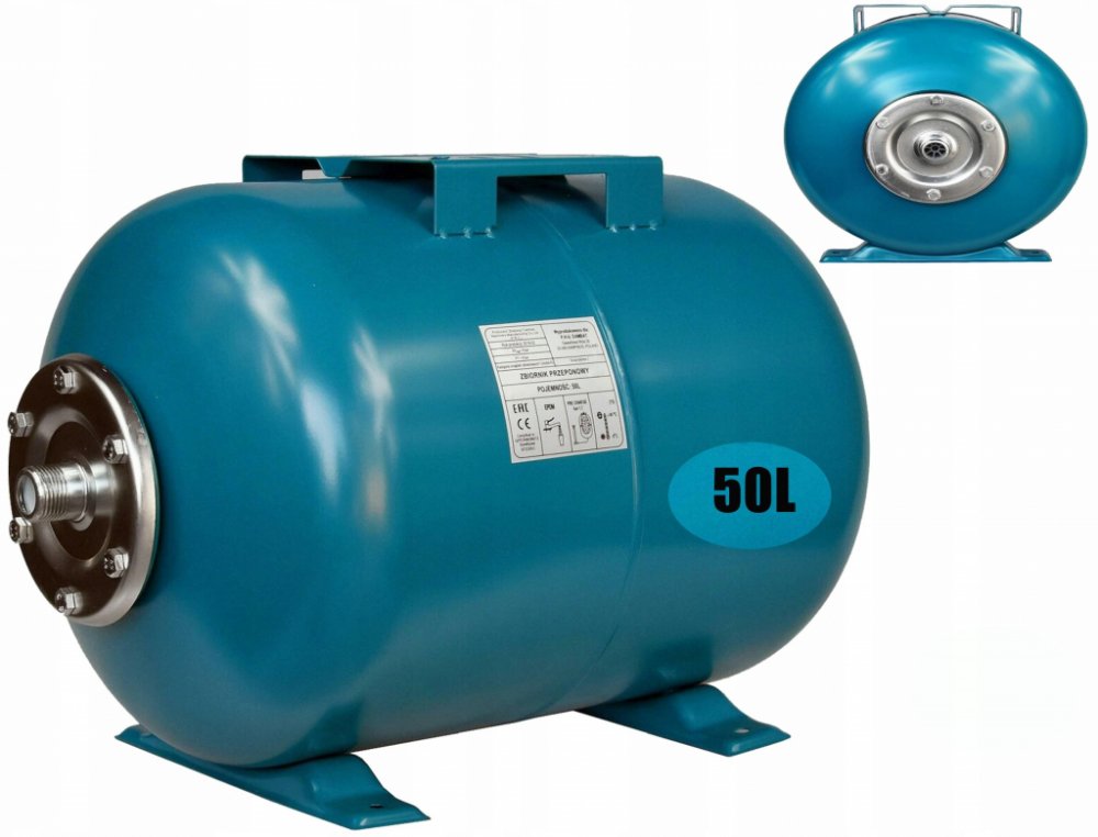 Horizontální membránové nádrže o objemu 50 l sloužící k ukládání vody ve vodovodních systémech.