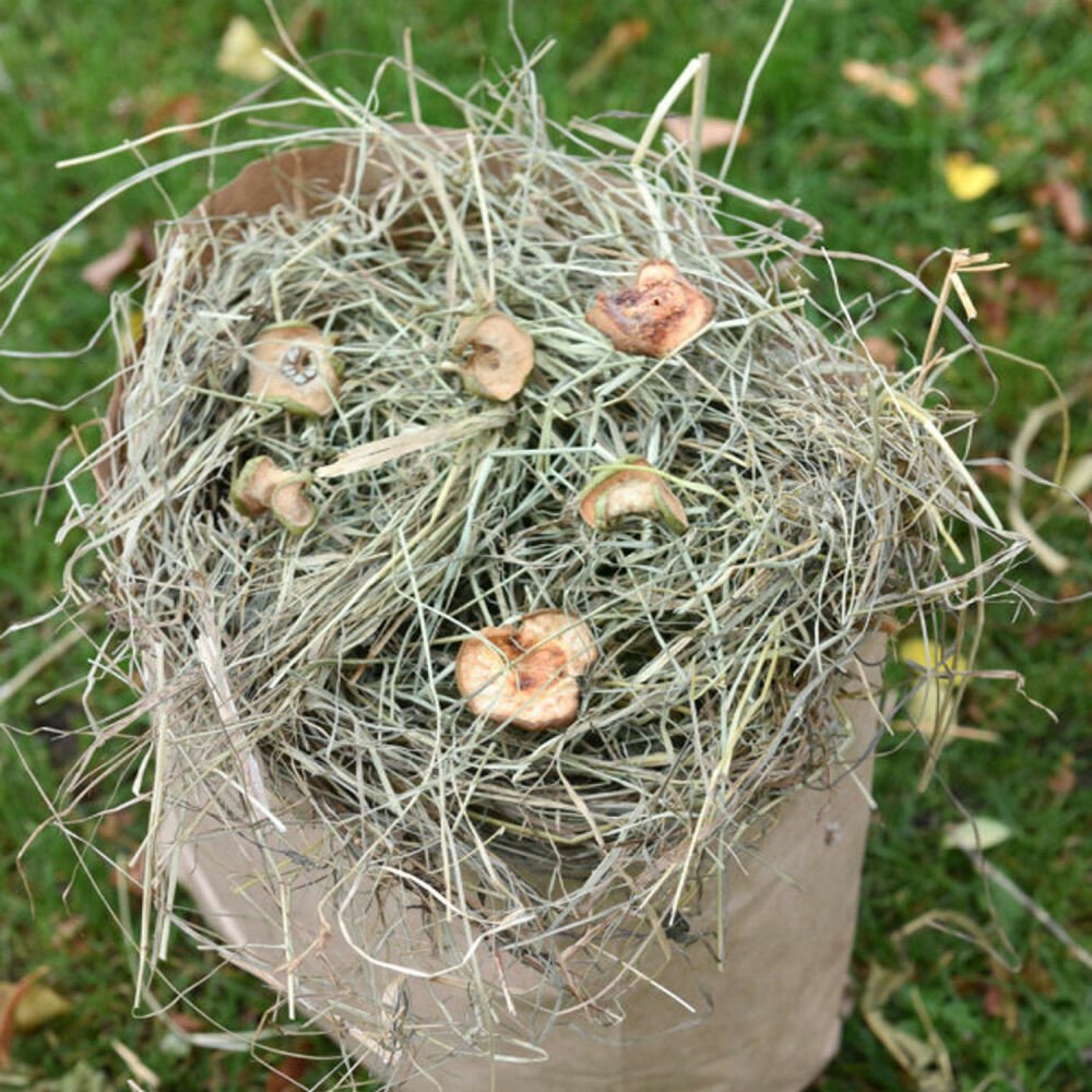 Doporučujeme sáček se senem otevřít, aby mohlo dýchat. Možné zkrmovat neomezeně.