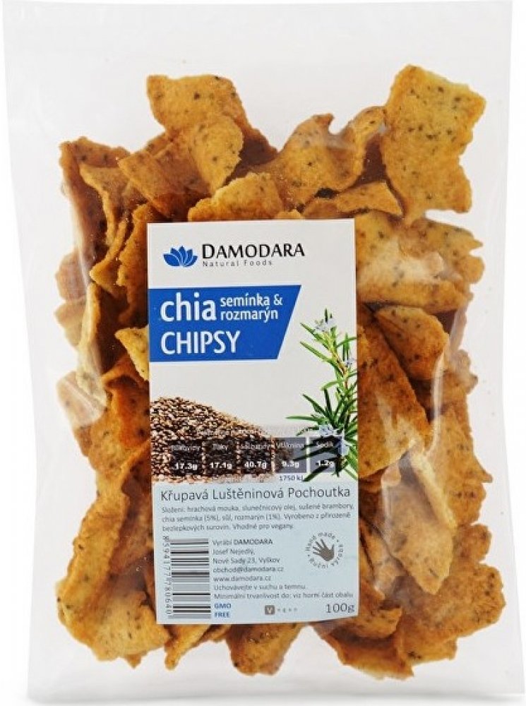 Damodara Chipsy s chia semínky a rozmarýnem 100g