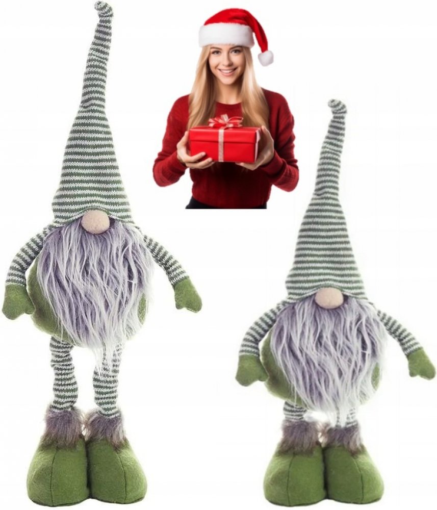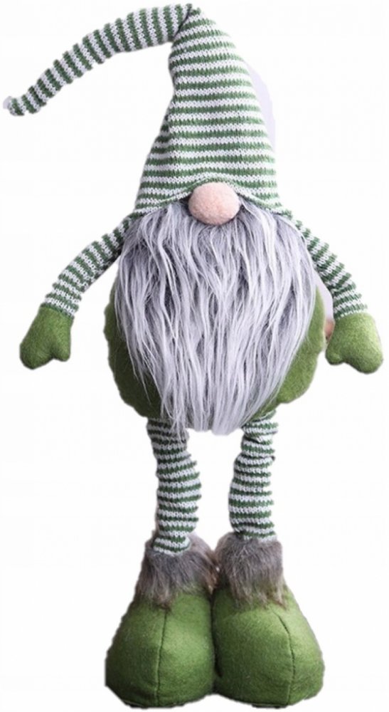 Skvělá vánoční dekorace, skvěle se hodí jako vánoční ozdoba. Trpaslík má špičatou čepici, velký nos a šedivé vousy. Je oblečen do slavnostního oblečku a bot s kožíškem. Trpaslík má teleskopické nohy. Můžete si nastavit jejich libovolnou délku od 42 cm do 54 cm.