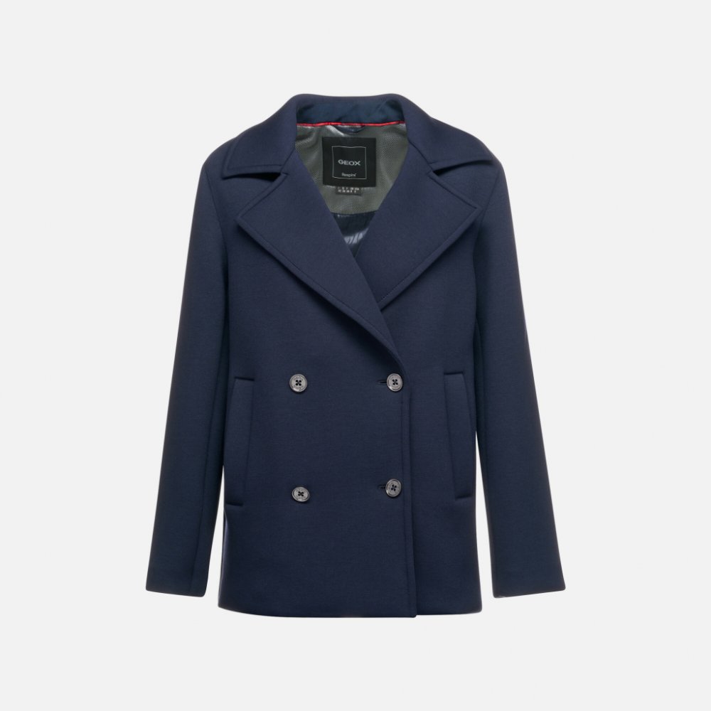 Elegantní dámský kabát Geox Gardenia v tmavě modrém provedení zaujme svým nadčasovým designem. Dvojřadé zapínání na lesklé knoflíky, široké klopy a strukturovaný límec dodávají bundě klasický vzhled. Praktické boční kapsy umožňují pohodlné uložení drobností. Kabát je vybaven následující technologií:: Respira™ Apparel technologie zajišťuje optimální prodyšnost a komfort díky speciální konstrukci, k...