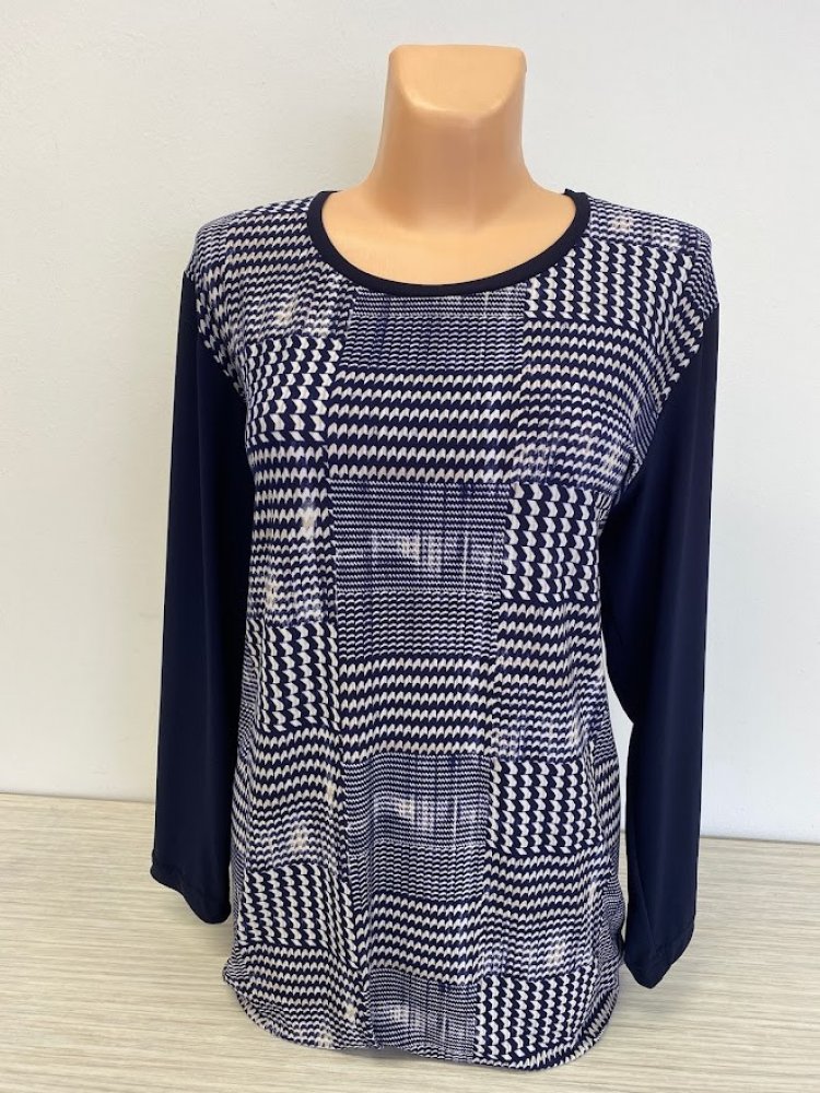 Modrá halenka s modrými jednobarevnými rukávy. Polyesterový úplet.